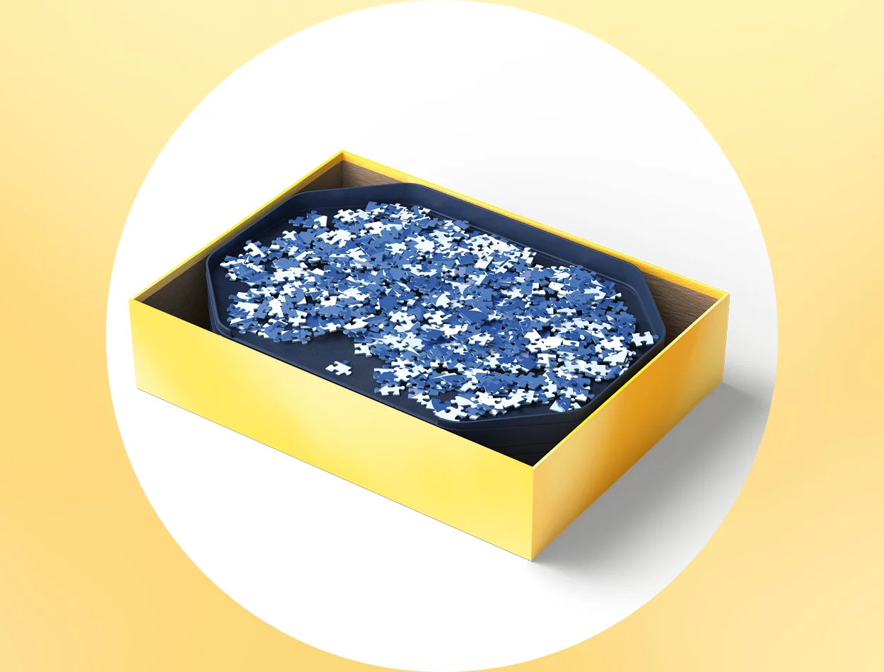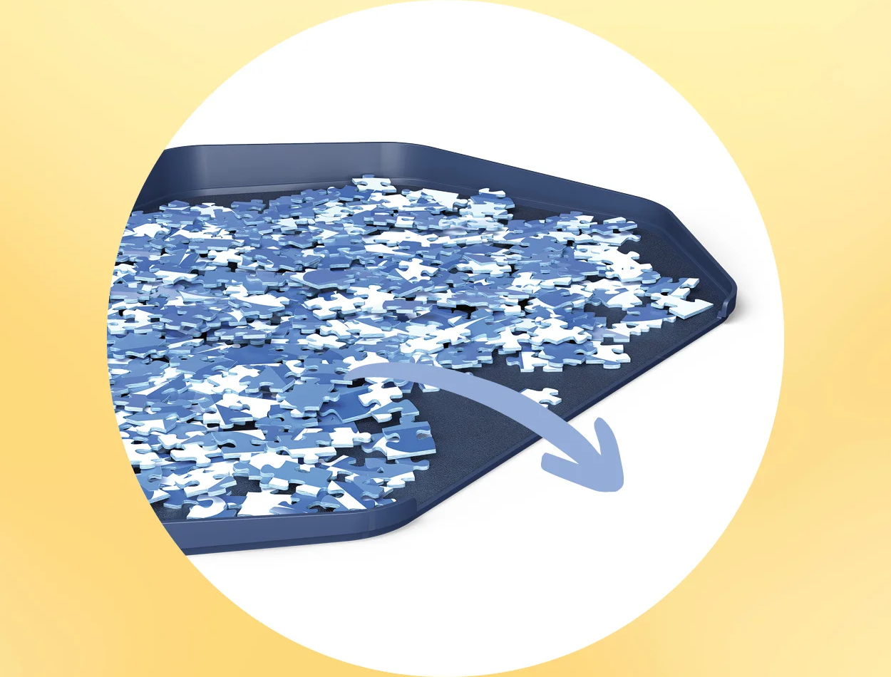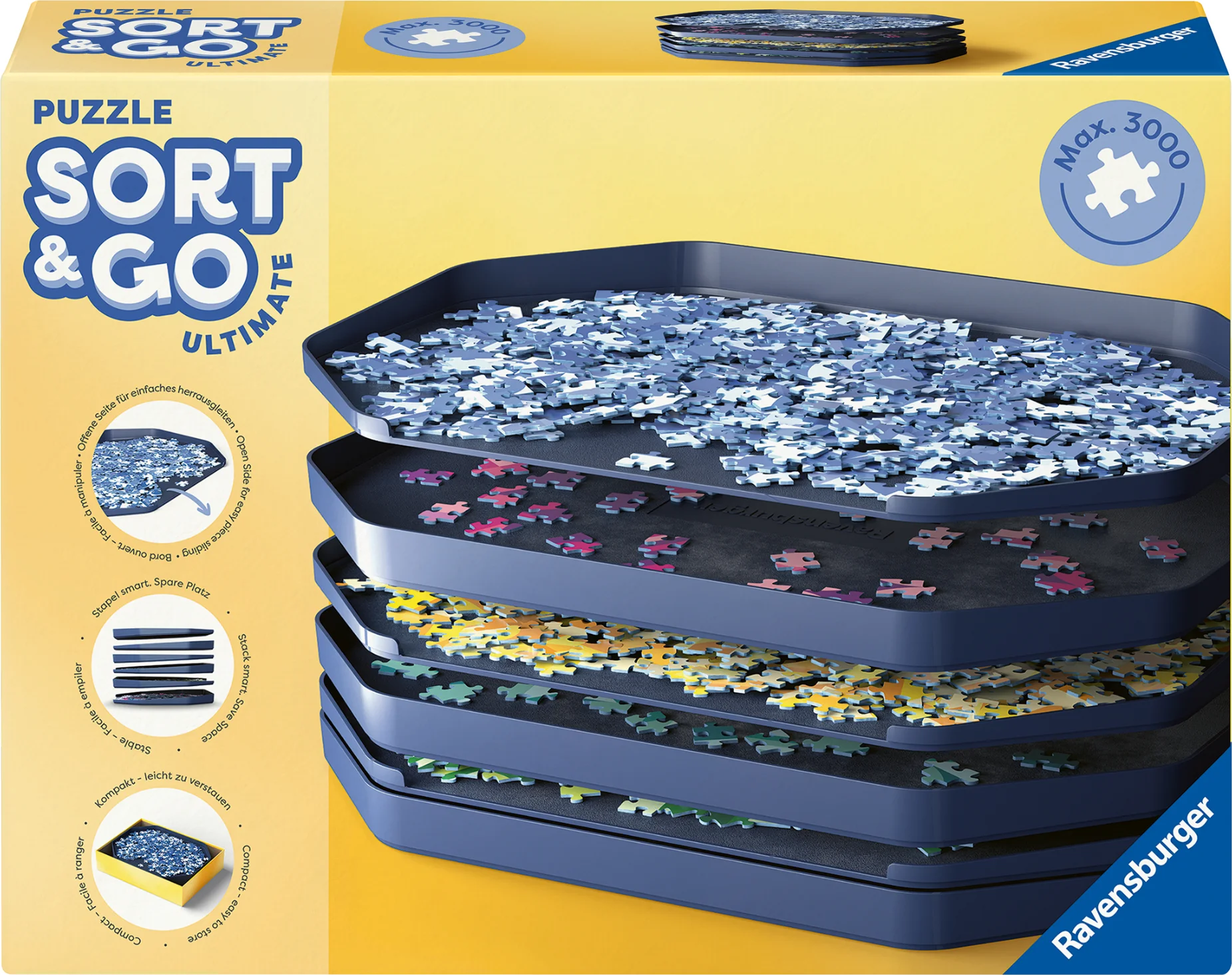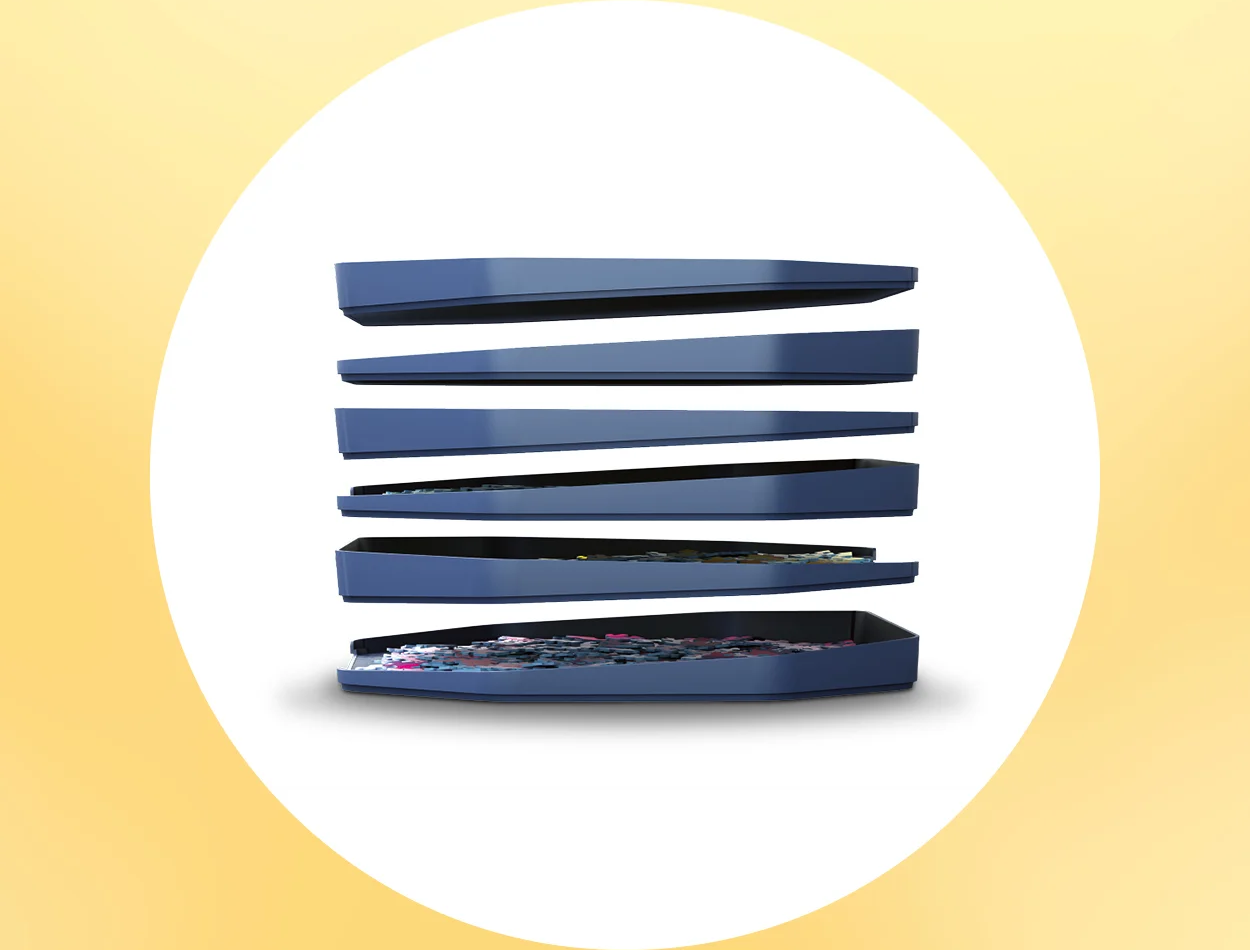 Inovativní třídicí systém Puzzle Sort&Go od značky Ravensburger je ideálním pomocníkem. Sada šesti extra velkých, stohovatelných třídicích skořepin umožňuje snadno roztřídit až 3000 dílků puzzle podle tvaru a barvy a bezpečně je uložit. Otevřená hrana usnadňuje vysouvání dílků, zatímco protiskluzová spodní strana zajišťuje stabilitu při používání. Díky diagonální funkci stohování se skořepiny ukládají prostorově úsporně – ideální řešení pro každého milovníka puzzle, který má rád pořádek a přehled.