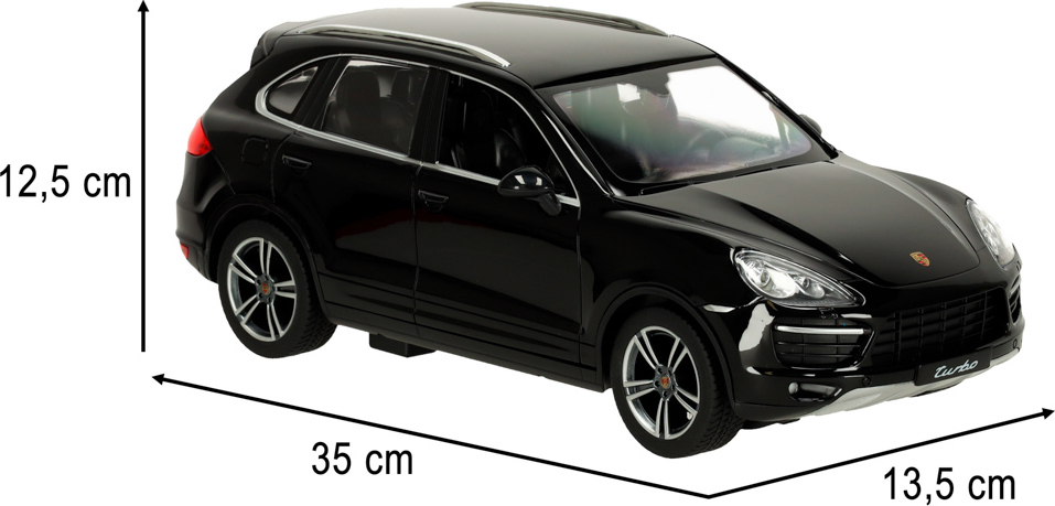 - realistické detaily - Porsche Cayenne Turbo v měřítku 1:14 je precizně reprodukovaná miniatura s realistickými detaily, jako je logo Porsche, světlomety a výrazná silueta vozu.