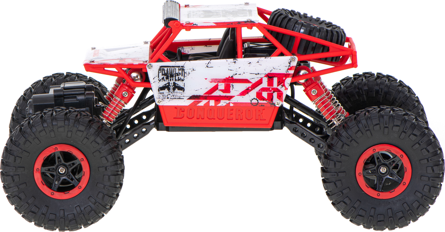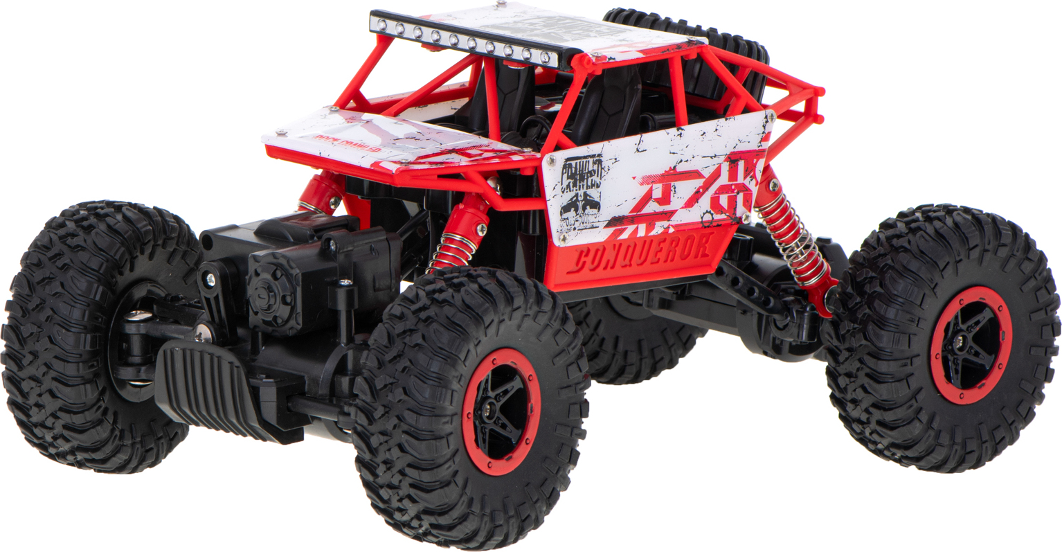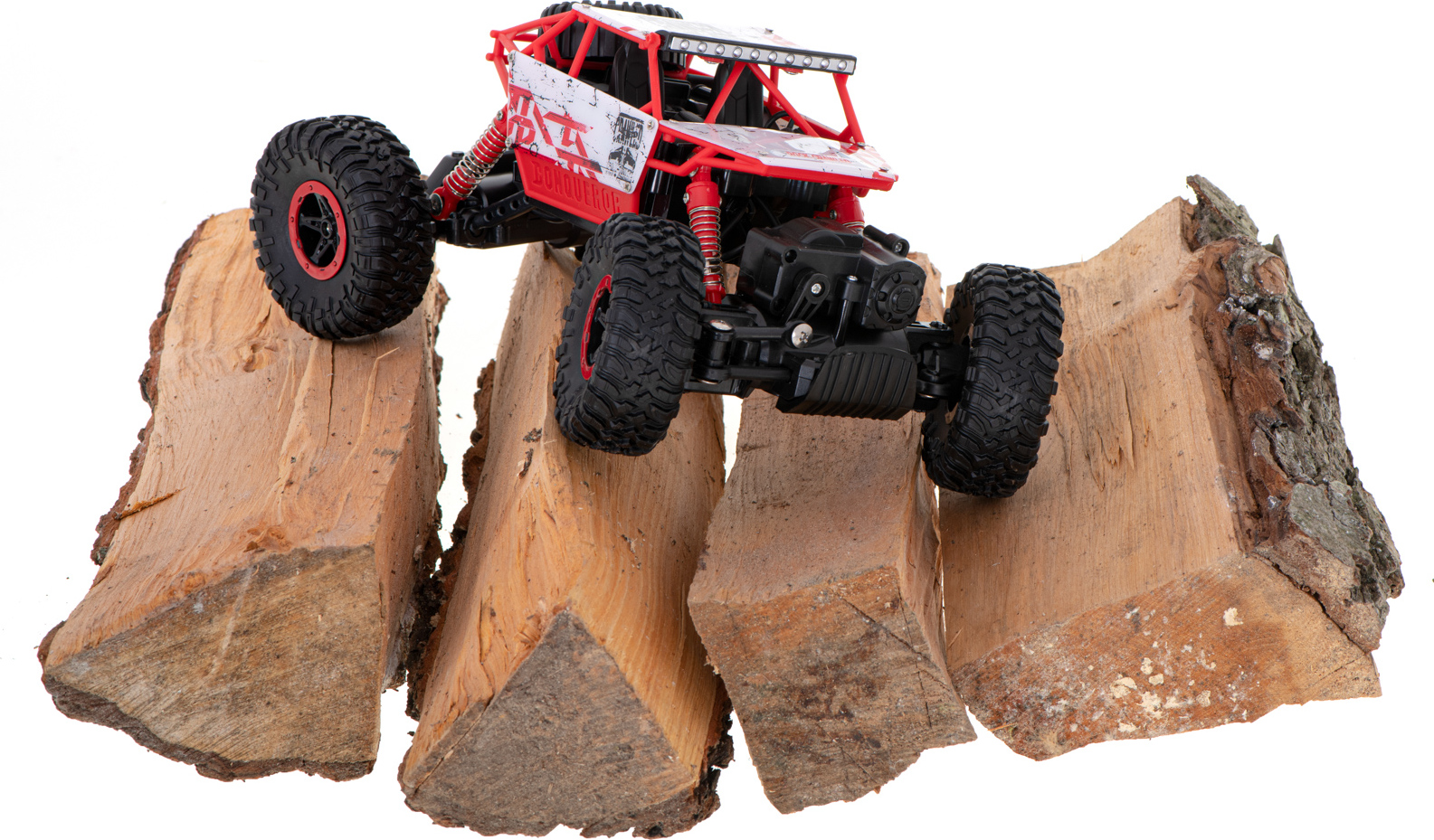 Toto terénní vozidlo si poradí s každou překážkou. Vyniká na asfaltu i nerovném kamení, stejně jako v lesní půdě. Za svůj výkon vděčí velkým kolům, speciální konstrukci odpružení a dvěma nezávislým motorům, z nichž každý pohání jinou nápravu. Model pracuje na frekvenci 2,4 GHz, což znamená, že je mnohem méně náchylný k rušení signálu než stroje pracující na nižších frekvencích. Tato široká šířka pásma umožňuje hrát si s více autíčky na jednom místě bez obav ze ztráty kontroly. Model je vyroben z nárazuvzdorného plastu. Kolize nebo dokonce převrácení tomuto terénnímu dobyvateli neublíží. Navzdory vysokému výkonu se auto velmi snadno ovládá. Díky jednoduchému ovládání je ideální pro ty, kteří svá dobrodružství s modely na dálkové ovládání teprve začínají.