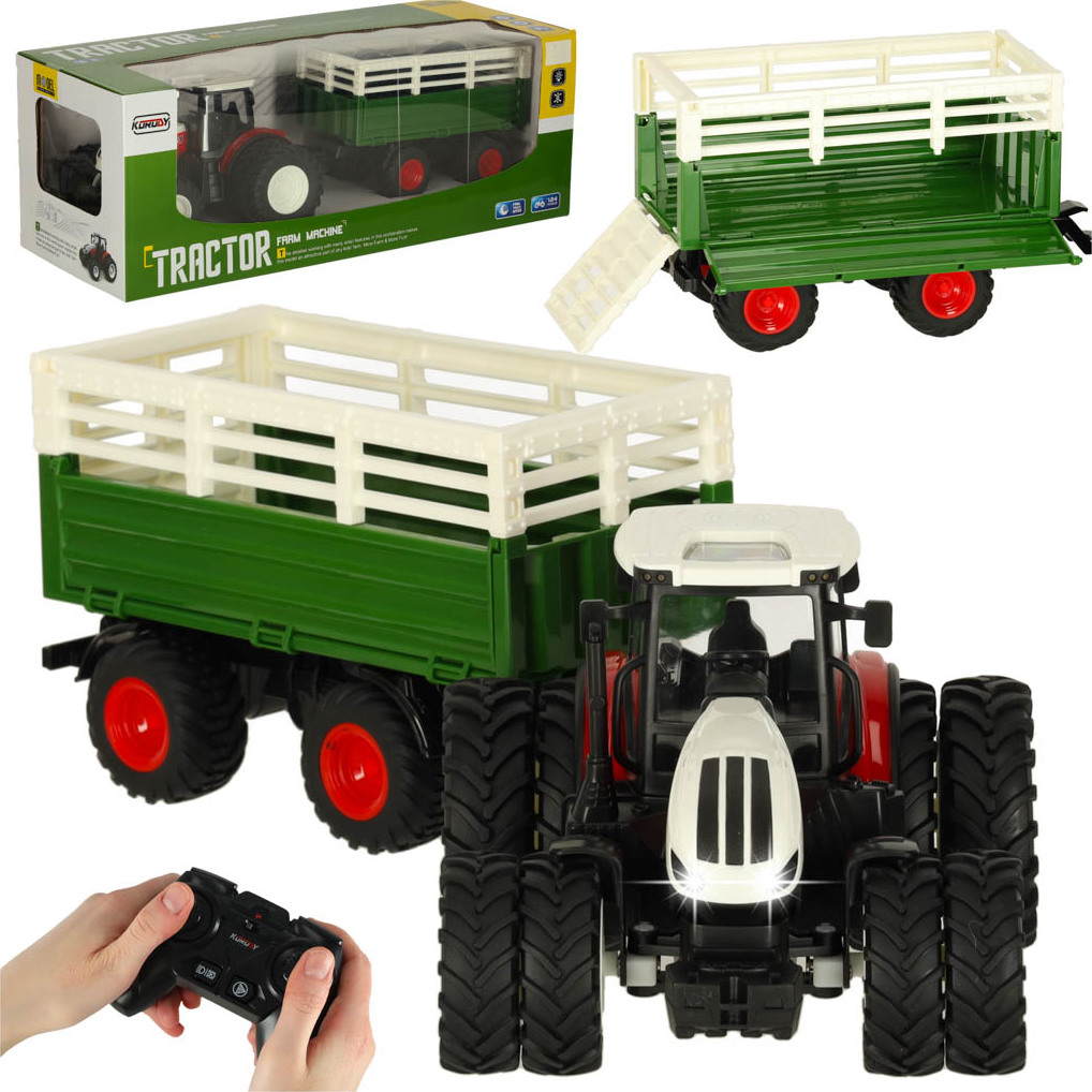 Tento traktor na dálkové ovládání je skvělou volbou pro každé batole, které miluje stroje a vozidla. Je vyroben z odolných materiálů a kopíruje vzhled skutečného traktoru - s výraznou kabinou, robustními koly a funkčním přívěsem, který lze odpojit a naložit na něj například zvířátka na hraní, kostky nebo jiné drobné předměty. RC systém 2,4 GHz zajišťuje plynulé a spolehlivé ovládání - bez rušení, i když jsou v blízkosti jiná vozidla na dálkové ovládání. Skvělá zábava uvnitř i venku - dokonalé skutečné zemědělské vozidlo pro děti!