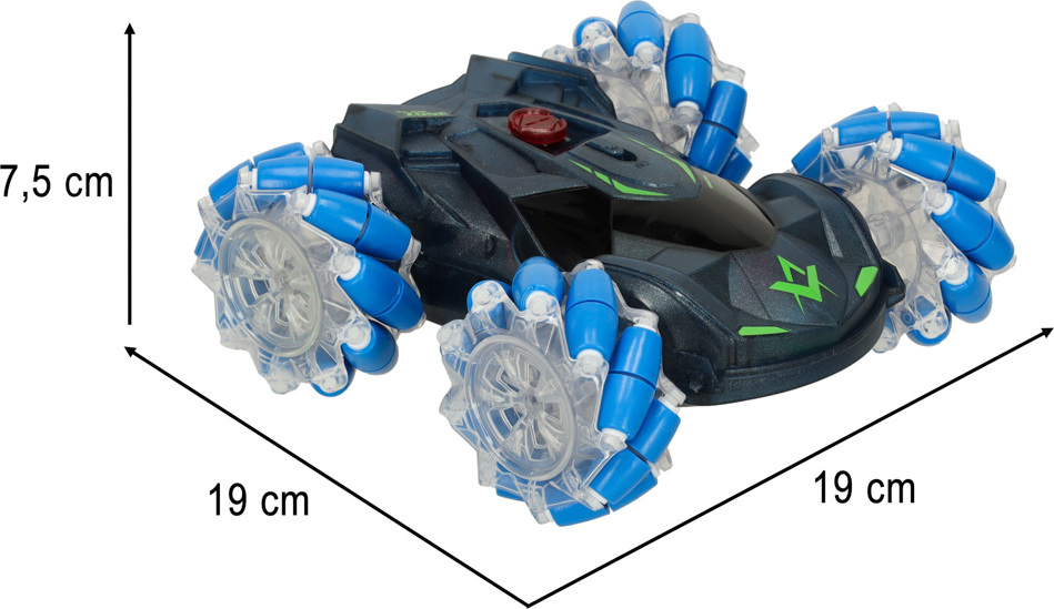 Tento RC model se nepodobá žádnému jinému vozidlu na dálkové ovládání. Parní generátor efektivně napodobuje výfukové plyny, což umožňuje dálkově ovládanému RC autu chovat se jako skutečné vozidlo. Auto je napájeno baterií nabíjenou přes USB, která poskytuje přibližně 20–30 minut dynamické jízdy. Auto se dobře ovládá na různých površích – trávě, silnici, písku nebo kamenech. Dálkové ovládání umožňuje plynulé manévrování, což umožňuje vozidlu dosáhnout rychlosti až 10 km/h nebo provádět přesné zatáčky a výkruty s prvky driftování. Během jízdy auto vydává zvuky připomínající řev motoru a realistické efekty rozhodně poskytují spoustu uspokojení z jízdy. Intuitivní ovladač umožňuje snadné a přesné ovládání, takže ho snadno zvládnou i začátečníci. Toto dálkově ovládané RC auto je určeno pro děti od 8 let a je také skvělým dárkem pro teenagera nebo dospělého. Jeho futuristický design a osvětlená LED karoserie poskytují zážitek připomínající akční nebo sci-fi film. Auto má vestavěnou nádrž, do které můžete pomocí lahve doplnit vodu. Stisknutím příslušného tlačítka na ovladači se z výfuku uvolní pára, která simuluje výfukové plyny během jízdy.