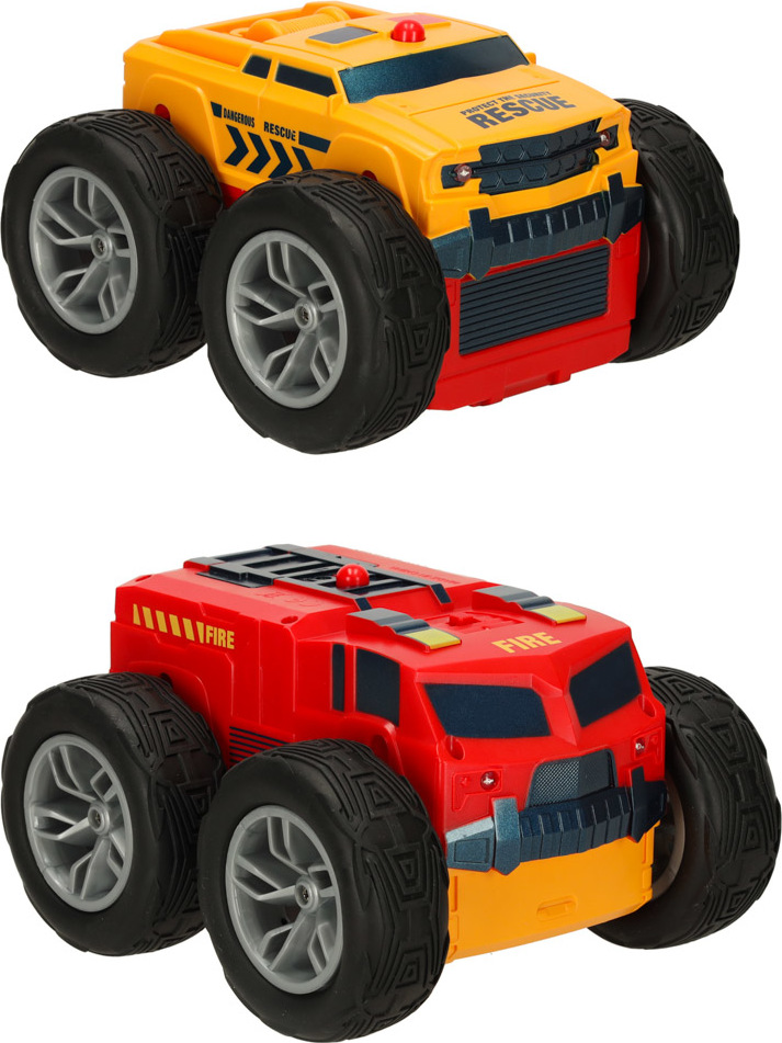 - dvě vozidla v jednom - Stisknutím tlačítka se změní poloha kol, čímž se auto změní z hasičského vozu na záchranářské vozidlo.