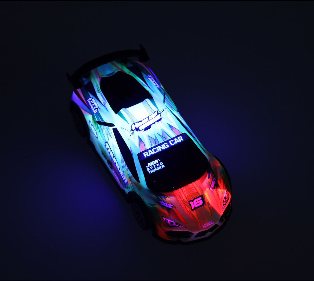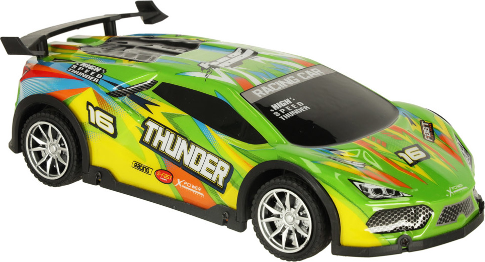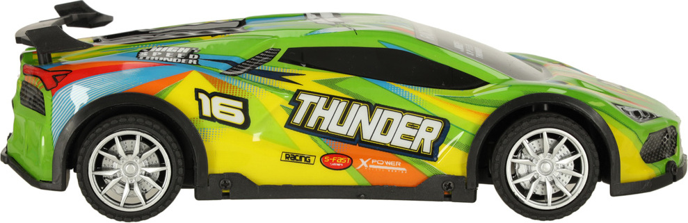 Toto zelené auto na dálkové ovládání je hračka pro malé automobilové nadšence. 3,5cm gumové pneumatiky zajišťují dobrou trakci, aniž by poškrábaly podlahu. Světelné efekty umocňují zábavu, zejména ve špatně osvětlených prostorách.