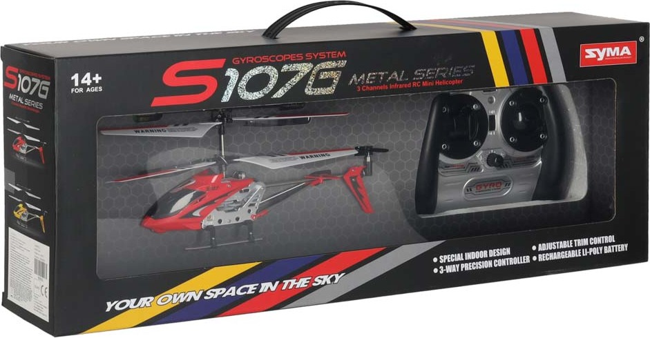Moderní dálkově ovládaný vrtulník řady S107G od renomované společnosti SYMA je skvělou volbou pro každého fanouška RC modelů. S107G z řady Metal od společnosti SYMA kombinuje moderní technologie, robustní hliník a přesné ovládání. Vrtulník S107G je vybaven pokročilým systémem stabilizace GYRO, který zajišťuje neuvěřitelně stabilní let. Hliníkový rám a tělo zajišťují odolnost i po četných pádech. Vrtulník se snadno ovládá dálkovým ovládáním. 3,5kanálový systém umožňuje plnou kontrolu ve třech směrech a zajišťuje dynamické a přesné manévry – nahoru-dolů, vlevo-vpravo, vpřed-vzad a dokonce i diagonální let. Užijte si dlouhé lety s dobou letu 7 až 10 minut v závislosti na zatížení. Rychlé nabíjení baterie (40–50 minut) přes USB kabel umožňuje rychlý návrat k letu.