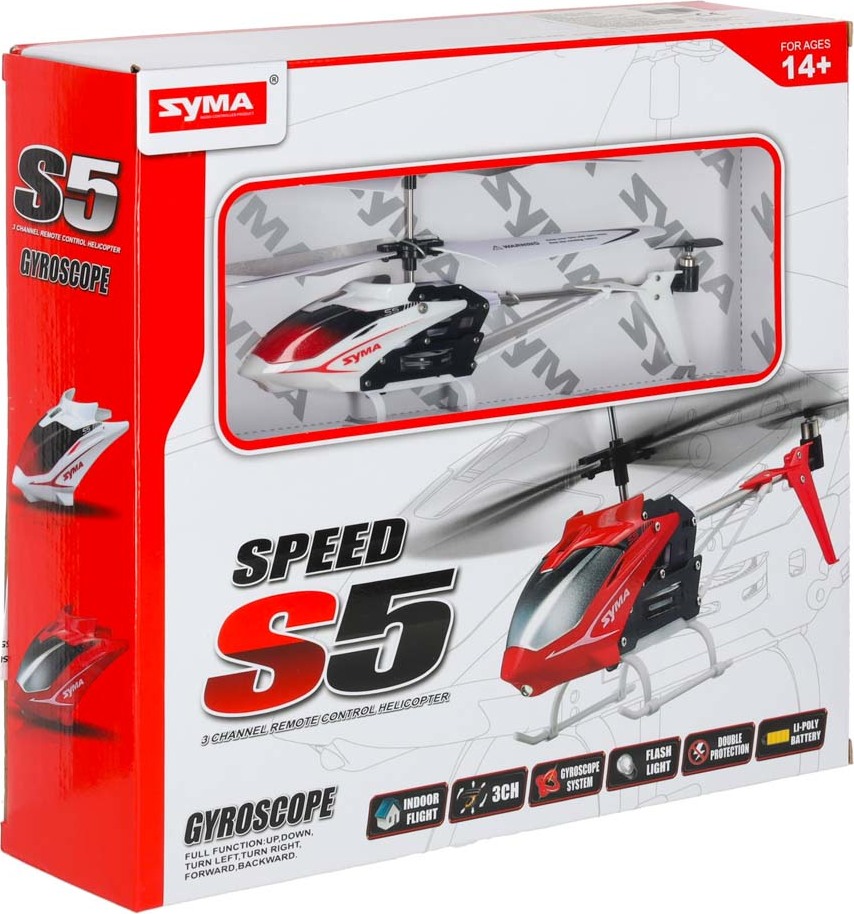 Syma S5 je perfektní volbou pro začátečníky, kteří začínají s modelářským dobrodružstvím. S tímto letadlem se snadno naučí řídit i malé dítě. Dva rotory zaručují výjimečnou stabilitu a jistotu letu, což umožňuje model ovládat i dětem. Nový systém stabilizace gyroskopu se nyní sám kalibruje. Pokaždé, když je model zapnutý a umístěn na zem, systém načte nastavení a zajistí stabilitu modelu během vzletu a letu. To znamená, že ani zcela nezkušený pilot nebude mít během svých prvních letů žádné problémy. Stroj je vyroben z odolných materiálů, díky čemuž je vysoce odolný vůči poškození během letu.