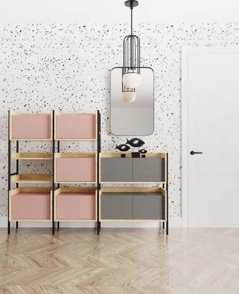 Regál je vyroben z lamino desek o síle 18 mm s ABS hranou. Regál má dvoje dvířka se systémem otevírání push-click a rovněž disponuje výsuvnou šatní tyčí pro zavěšení ramínek - lze jej tak pohodlně využít jako šatní skříň. Regál je možné kombinovat s rámem kolekce BIOM. Tento regál nabízíme v módních pastelových odstínech, které lze skvěle kombinovat