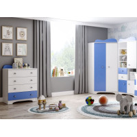 Praktický úložný regál CLOUDS, který skvěle poslouží jako knihovna, je vyrobený z kvalitních lamino desek o síle 18 mm v bílé barvě kombinované s barevnými dvířky dle vašeho výběru. Hrany nábytku jsou zakončeny ABS/PVC materiálem, který jej chrání před mechanickým poškozením a vlhkostí. Regál obsahuje otevřené police kombinované s uzavřenými skříňkami. Čela dvířek jsou osazena plastovými úchyty ve tvaru mráčku, charakteristickými pro celou kolekci. Úchyty dodávají nábytku jedinečný charakter a styl. Kombinujte nábytek z kolekce CLOUDS přesně na míru velikosti pokoje i potřebám svých dětí.