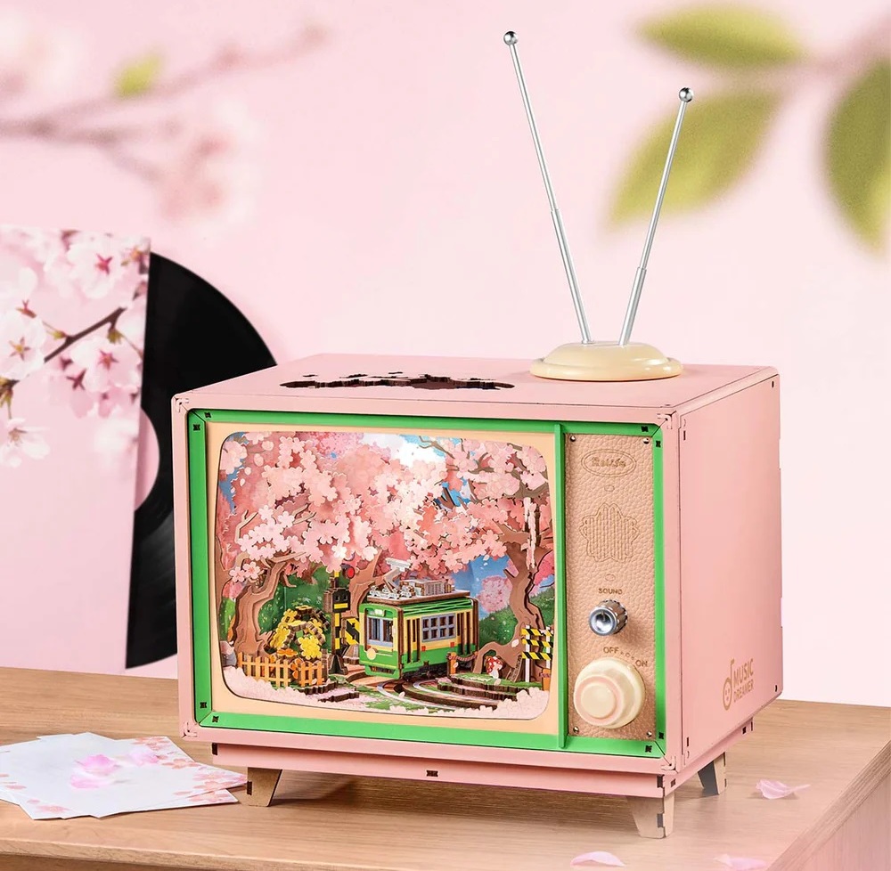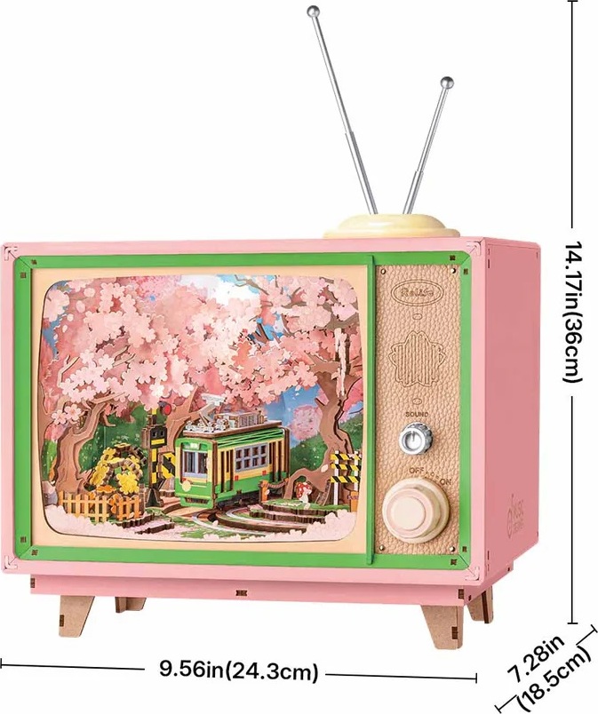 Proměňte svůj domov v kouzelnou jarní oázu s touto velkolepou 3D dřevěnou mechanickou hudební skříňkou, které se nelze ubránit. Tento unikátní DIY set vám přináší atmosféru jarního Japonska. V retro televizi se pomalu pohybuje zelený tramvajový vagón pod rozkvetlými sakurami, zatímco jemné pastelové tóny a teplé osvětlení navozují pocit klidu a nostalgie. Díky vestavěným LED světýlkům a hudbě (měsíčně laděné „Minuet in G Major“ a „Jesu, Joy of Man’s Desiring“) se váš interiér promění v harmonický prostor. Hudební skříňka je ideální jako stylová dekorace, relaxační prvek nebo originální dárek.Tento prémiový 3D dřevěný puzzle set je navržen s důrazem na detail. Všechny dílky jsou laserově přesně vyřezané, takže sestavení je pevné a nevyžaduje žádné lepidlo. S 283 dílky a přibližně 4 hodinami montáže představuje i skvělý kreativní projekt, který zároveň posiluje jemnou motoriku, smysl pro detail a trpělivost. Po složení se hudební skříňka stane výrazným dekoračním doplňkem. Krásně vynikne v obýváku, ložnici, pracovně nebo jako originální bytový doplněk s nádechem japonského stylu a vintage kouzla. 3D skládačka je skvělým způsobem, jak si užít kreativní a edukativní hraní a zároveň vytvořit netradiční dárek či doplněk interiéru. Skládání skládačky podporuje rozvoj jemné motoriky, prostorového myšlení a trpělivosti. Pozvěte svou rodinu nebo přátele a užijte si zábavné tvoření bez nutnosti použití lepidla nebo nástrojů. Všechny dílky do sebe lehce zapadnou, aby výsledek byl stabilní a odolný.