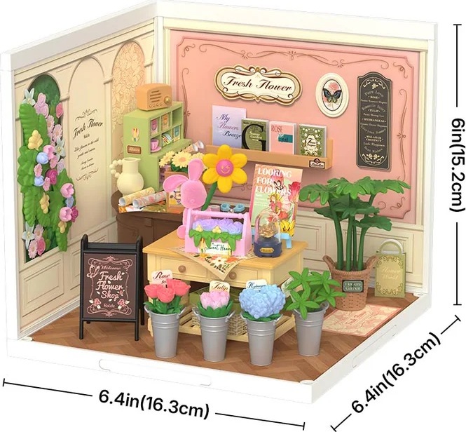RoboTime 3D dřevěná skládačka Miniatura domečku Květinářství Fresh Flower