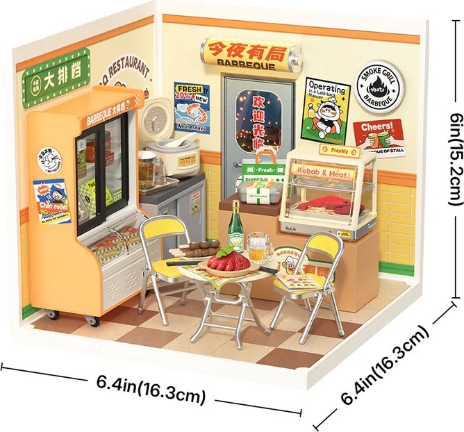 RoboTime 3D dřevěná skládačka Miniatura domečku Rychlé občerstvení