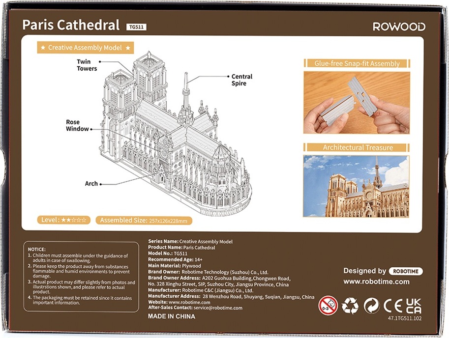 Objevte kouzlo jedné z nejznámějších staveb světa s detailní dřevěnou replikou pařížské katedrály Notre Dame. Tento mistrovský 3D model s 330 dílky zachycuje krásu gotické architektury. Majestátní dvojici věží, štíhlou věžičku, rozetová okna i ikonické opěrné pilíře. Skládačka je navržena tak, aby potěšila sběratele, milovníky historie i všechny nadšence do precizního modelářství. Díky chytrému bajonetovému uzamykacímu systému drží pevně pohromadě a obejde se úplně bez lepidla. Postavte si tento ikonický monument s rodinou nebo přáteli a užijte si společně strávený čas. Sestavený model se stane stylovým, nadčasovým doplňkem každého interiéru a zároveň oslavou více než 850 let francouzské historie, umění a kultury. S touto skládačkou si domů přinesete nejen výjimečný model, ale i kousek světových dějin a pomůžete je uchovat pro budoucí generace.