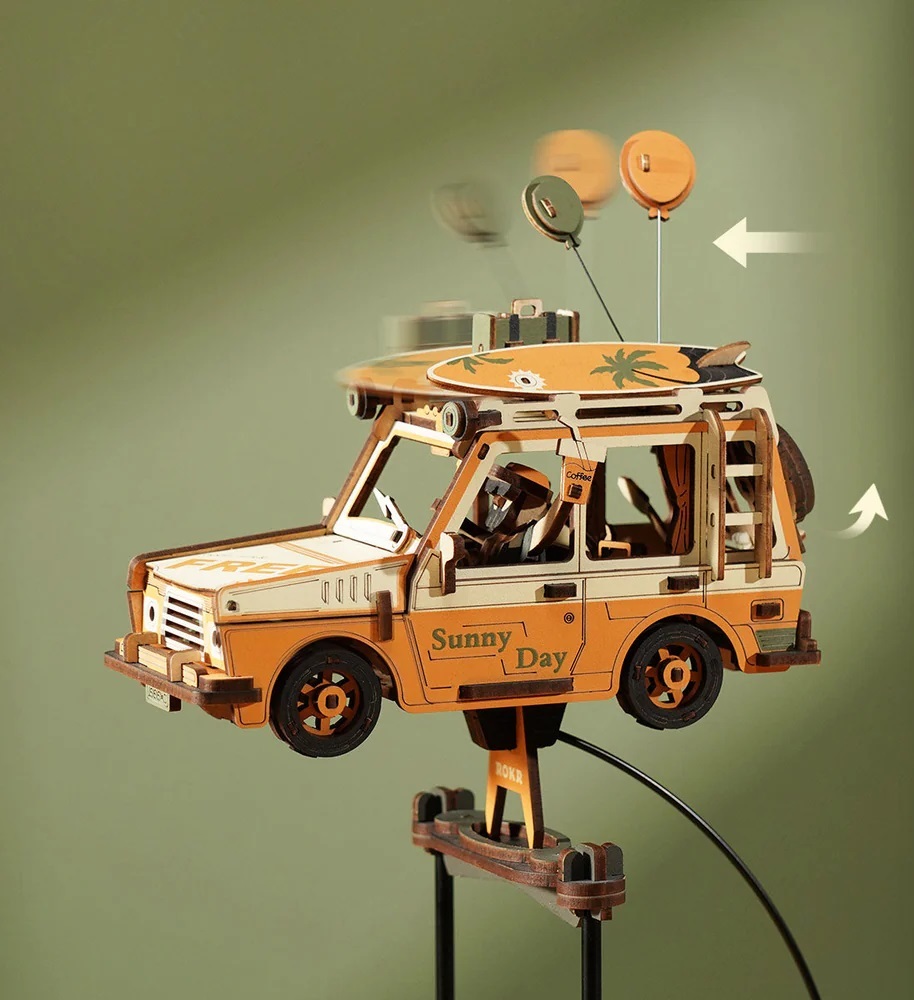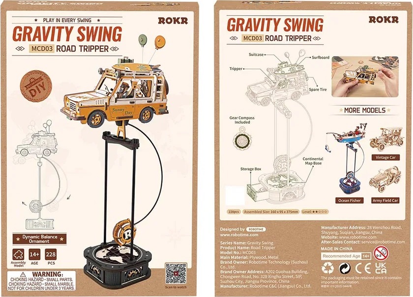 Vydejte se na zábavnou a epickou cestu za tvořením, pohybem a fyzikou s Road Tripperem, vzrušujícím kyvadlovým modelem, který si sestavíte sami. S pocitem dobrodružství se vydáváme na otevřenou silnici a objevujeme rovnováhu, pohyb a gravitaci s Road Tripperem. Žlutobílý retro džíp typu Land Rover - C je vybaven realistickými detaily - řidičem, který si vychutnává kávu, jezdeckým psem s brokovnicí, surfem a kufrem bezpečně upevněným na střeše, obytným vybavením a balónky připomínajícími dobrodružství. Za západem slunce na nás čekají neznámé hranice. Svoboda je na dosah.Tento kompaktní džíp se lehkým zatlačením uvede do rytmického pohybu na zatíženém kyvadlovém podstavci, ukazující harmonii a rovnováhu prostřednictvím chytrého mechanického designu. Je součástí řady Gravity Swing, která spojuje zábavu se vzděláváním a probouzí zvědavost všech věkových kategorií. Tyto chytré modely s kyvadlovým mechanismem umožňují lidem objevovat základní principy fyziky hravou formou. Pojmy jako gravitace, pohyb, rovnováha či přeměna potenciální a kinetické energie se stávají nejen pochopitelnými, ale i zábavnými. Věda se mění v dobrodružství, které rozvíjí kreativitu i praktické dovednosti. 3D mechanická skládačka je skvělý způsob, jak si užít kreativní a edukativní hraní a zároveň vytvořit nádherný model, který se může stát netradičním dárkem či ozdobou interiéru. Skládání podporuje rozvoj jemné motoriky, prostorového myšlení a trpělivosti. Je to možnost, jak kombinovat zábavu se vzděláváním. Všechny přesně vyřezané dílky do sebe lehce zapadnou bez použití lepidla či nástrojů, aby výsledek byl stabilní a odolný. Skládačka je dodávána v nesloženém stavu, zabalená v krabici s podrobným návodem k sestavení.