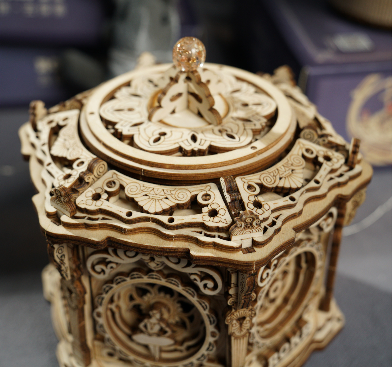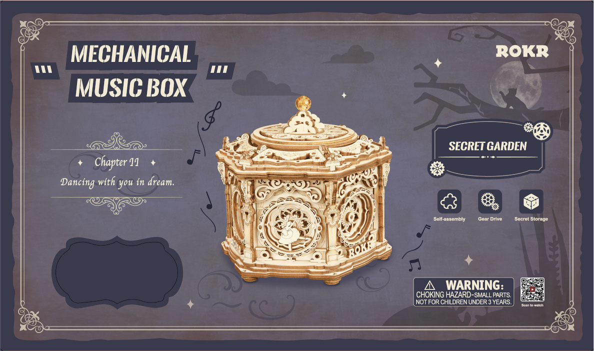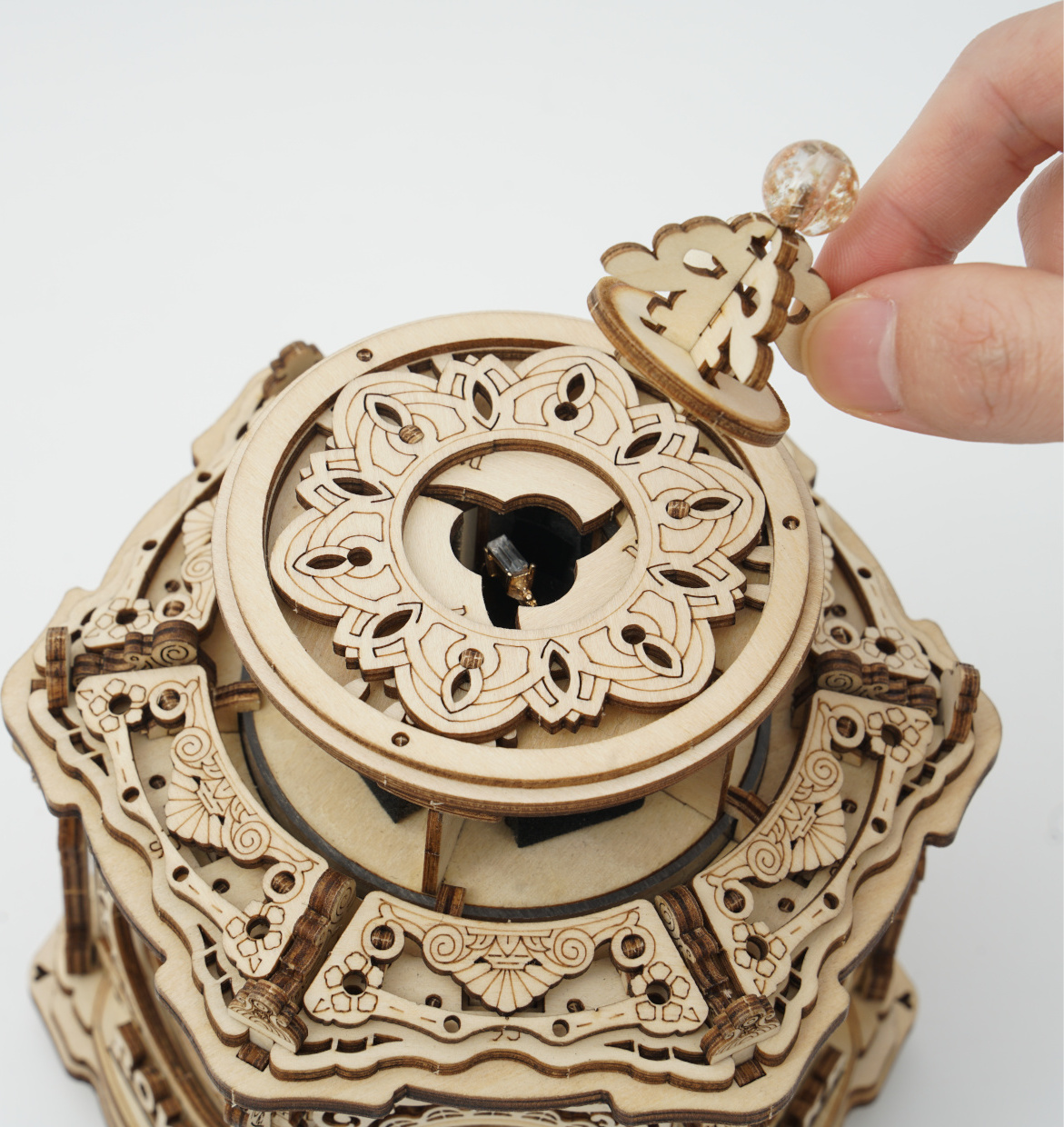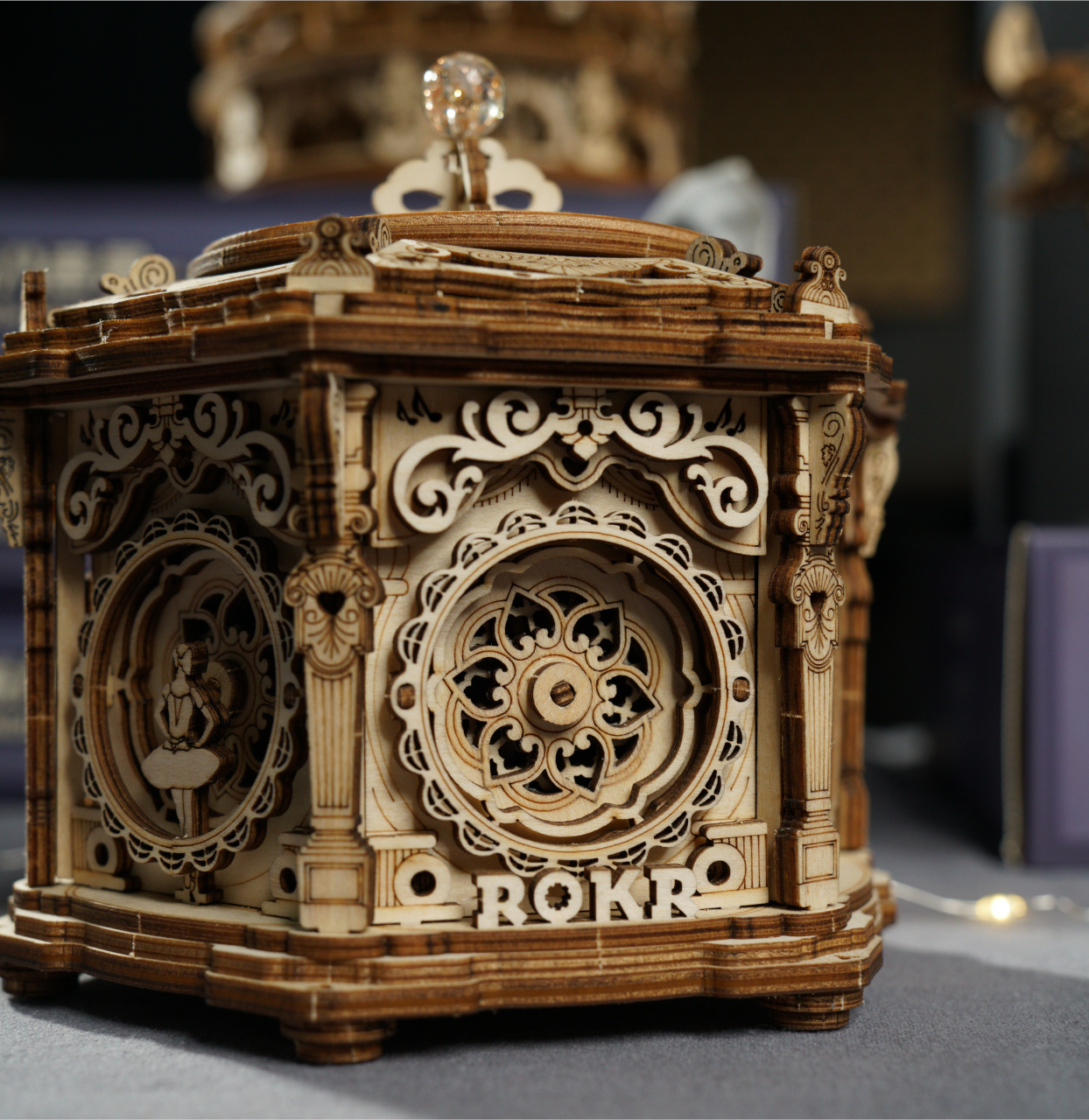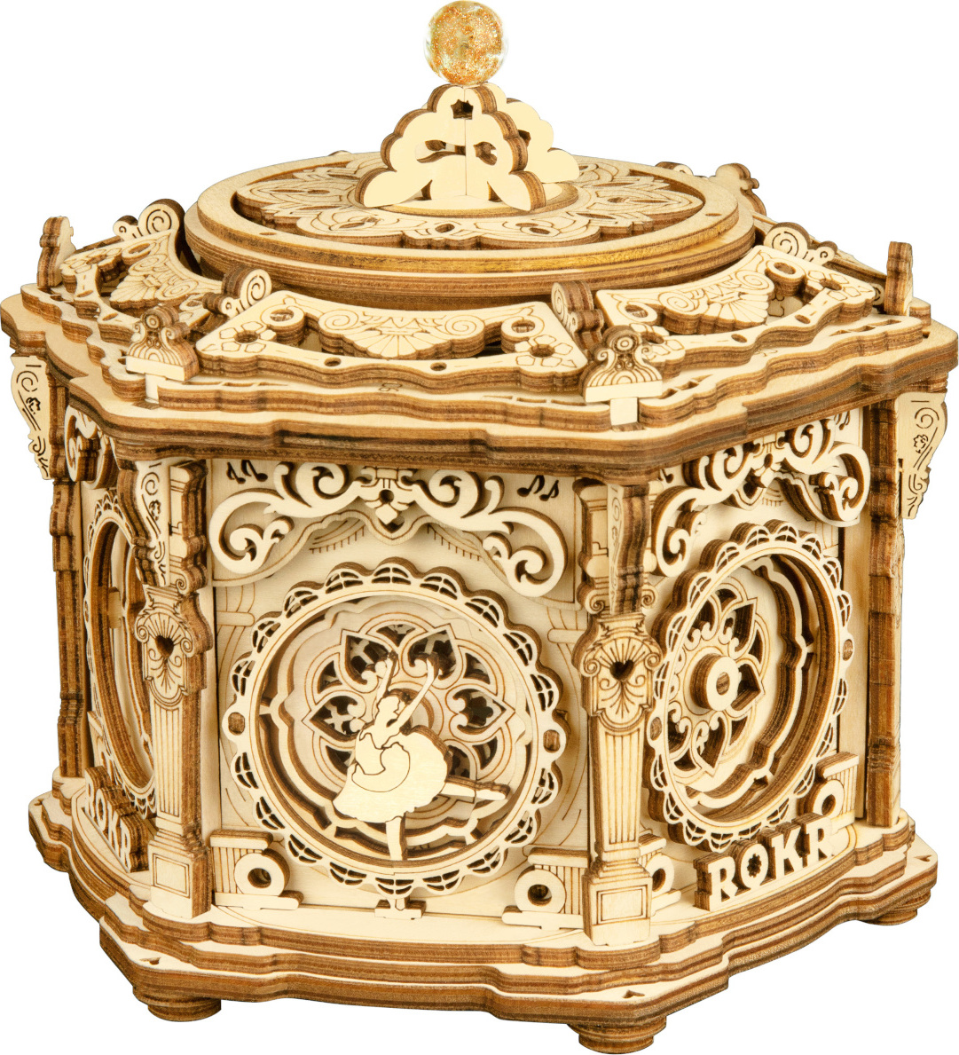 Detailní model ornamenty vykládané renesanční kazety. Skládačky hracích skříněk Robotime jsou nabízeny v mnoha podobách, přírodních i barevných, lišících se nápaditými pohyblivými detaily doprovázejícími zvuk. Nezaskočí Vás svou náročností a po sestavení zkrášlí poličku. Nechte se unášet známými melodiemi, každá skříňka hraje jinou, odpovídající své výsledné podobě. Kvalitní natahovací 18 tónové strojky s japonskými komponenty zaručují čistý a dostatečně hlasitý projev. Skládačka je dodávána v nesloženém stavu, balena v krabici. Vybaveno detailním návodem k sestavení.