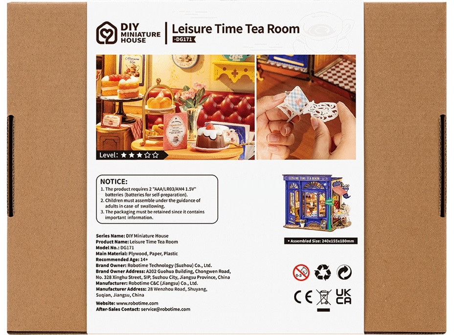Cítíte tu vůni? Otevřete zářivě modré dveře a vejděte do anglické čajovny ve vintage stylu někde v Londýně. Usaďte se na prošívanou červenou koženou sedačku a vyberte si z menu. Dáte si lahodný koláč, pudink či dort? Nebo si raději vychutnáte šálek pravého anglického čaje venku u stolečku a budete sledovat, co se kolem děje? Přečtěte si nabídku dobrůtek pod osvětlením krásné nástěnné lampy ve tvaru květiny. Čajovna je propracována do nejmenších detailů jako dlažba, rustikální kovové cedule, plechovky s čajem, sklenice džemu či květiny na stole. Vychutnejte si atmosféru klidu a pohody, která je umocněna příjemným LED osvětlením.