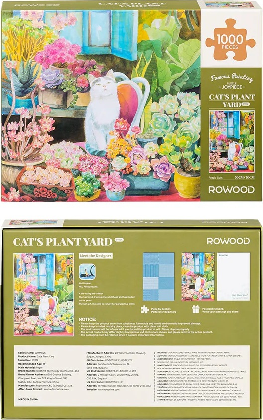 Relaxujte v kouzelném zahradním ráji s tímto puzzle o 1000 dílcích. Okouzlující skládačka zachycuje zvědavou kočku odpočívající mezi kvetoucími rostlinami v klidné zahradě. Díky precizně řezaným dílkům do sebe puzzle perfektně zapadá a nabízí tak uklidňující a uspokojivý zážitek při skládání.Ideální pro milovníky koček, nadšence do rostlin i pro všechny, kdo si chtějí užít chvíle klidu a tvůrčí zábavy. Puzzle Kočičí zahrádka přinese do vašeho domova pohodu. Perfektní jako dárek nebo doplněk domů či kanceláře. Skládání puzzle trénuje mozek, trpělivost, jemnou motoriku a dovednosti při řešení problémů.