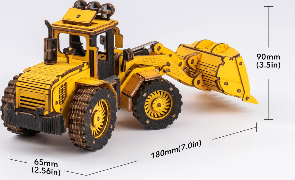 Propracovaný realistický model patří do řady ROBOTIME ROKR Engineering Vehicles Model Series. Realistické a pohyblivé detaily. Bez nutnosti lepení. Laserem vyřezávané dílky z 2 mm lipové překližky. Rozvíjí technické myšlení, představivost, cit pro detail a jemnou motoriku. Překrásný dárek pro větší děti i dospělé. Po dokončení působivá dekorace. Načtením QR kódu z obalu zobrazíte video. Obtížnost: 2 z 5 (dle rozdělení Robotime). Orientační doba na složení: 2,5 hodiny. Poznámka: detailní obrázkový návod obsahuje doplňující texty v angličtině. Řada Engineering Vehicles obsahuje 5 produktů: vysokozdvižný vozík TG413K, bagr TG508K, buldozer TG509K, sklápěč TG603K, silniční válec TG701K. Rozměr složeného puzzle cca 18 x 6,5 x 9 cmVlastnosti