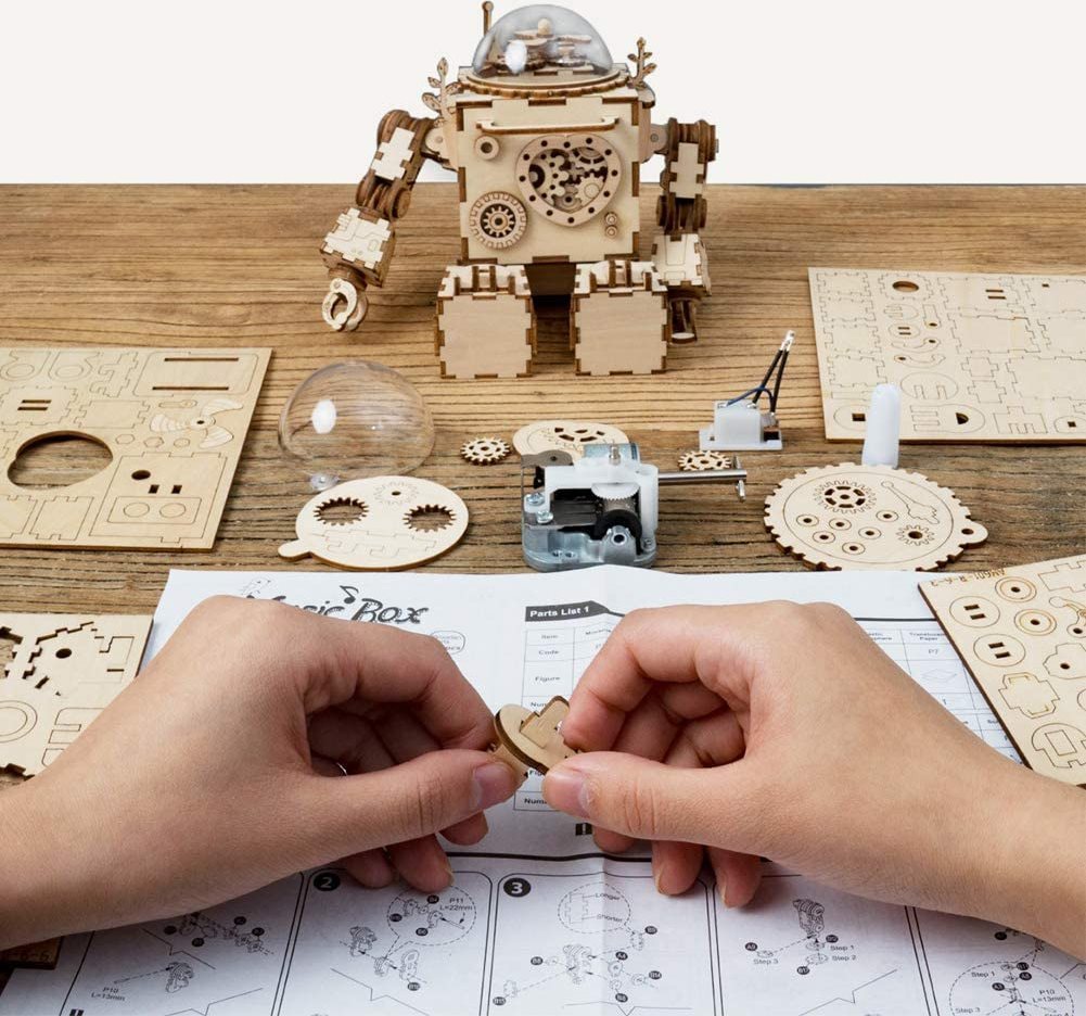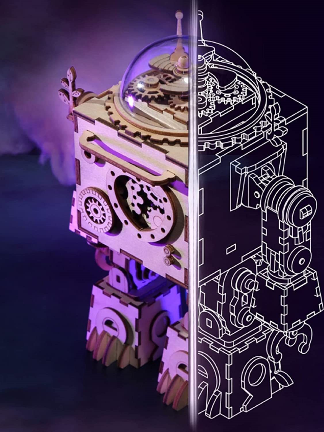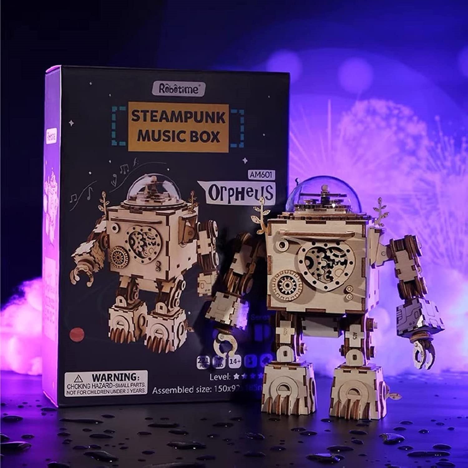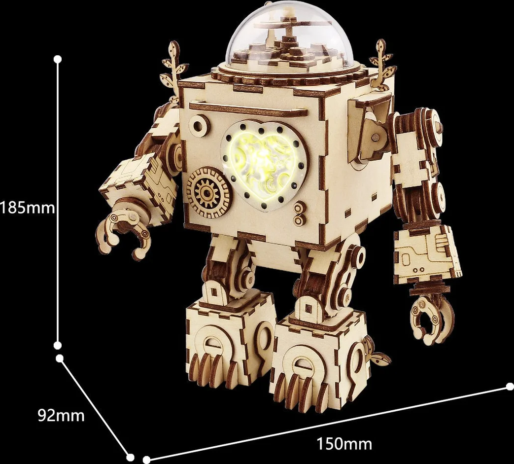 ROBOTIME Rokr Svítící 3D dřevěné puzzle Robot Orpheus (hrací skříňka) 221 dílků