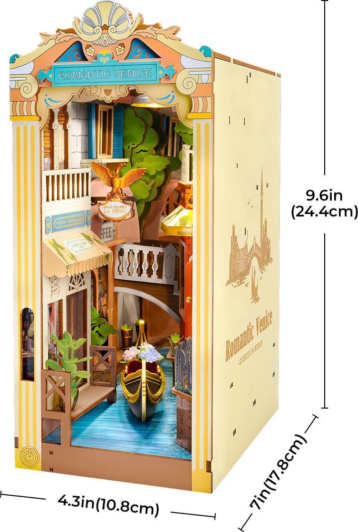 Řada ROBOTIME ROLIFE 3D Book Nook Do It Yourself Miniature House představuje miniaturní domečky jako zarážku na knihy ve formě zmenšených modelů místností, pokojů, domů, uliček i zahrádek. Vlastníma rukama vykouzlíte úžasná díla s desítkami miniaturních detailů. Užijte si hodiny tvoření a těšte se překrásným výsledkem. Poznejte Benátky z jedinečné perspektivy – přímo z klasické gondoly, která vám odhalí krásy Města na vodě jinak, než když jej procházíte pěšky. Hlavní „cesty“ Benátek tvoří totiž Velký kanál (Canal Grande) a jeho spletitá síť vodních uliček. Benátky, známé také jako Město masek, vás každoročně na konci zimy zvou na proslulý Carnevale di Venezia. Můžete si užít barevná vystoupení hudebníků, akrobatů a tanečníků v ulicích, zatímco budete mít na obličeji vlastní zdobenou masku s peřím. Nebo dáte přednost klasické italské opeře v Teatro La Fenice (Fénix) – ikonické budově symbolizující bohatou historii města. A až vaše benátské dobrodružství skončí, můžete si dopřát bohatou italskou kávu či espresso a sladké pečivo v Caffè La Fenice, hned vedle slavného divadla.