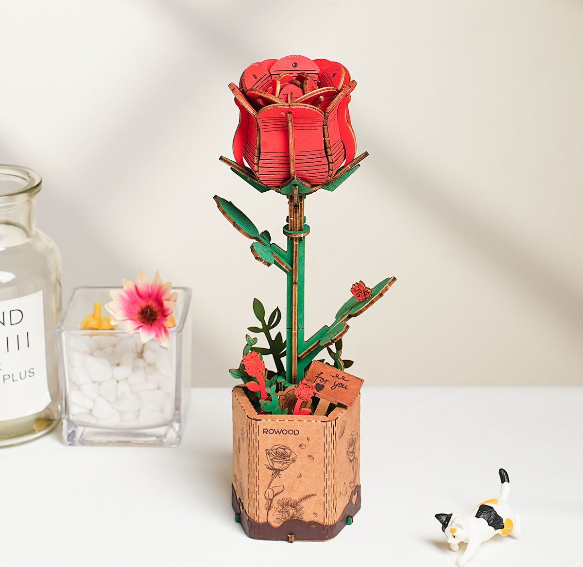 ROBOTIME Rowood 3D dřevěné puzzle Červená růže 106 dílků