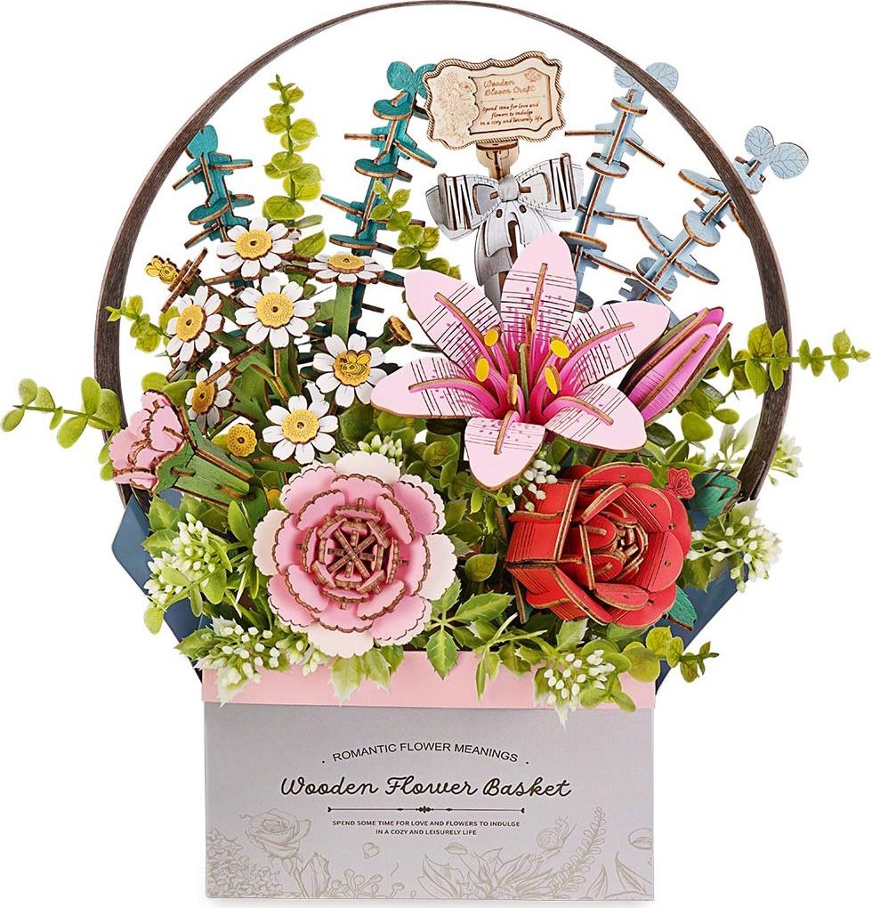 ROBOTIME Rowood 3D dřevěné puzzle Košík s květinami 428 dílků