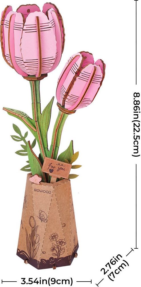 ROBOTIME Rowood 3D dřevěné puzzle Růžové tulipány 72 dílků
