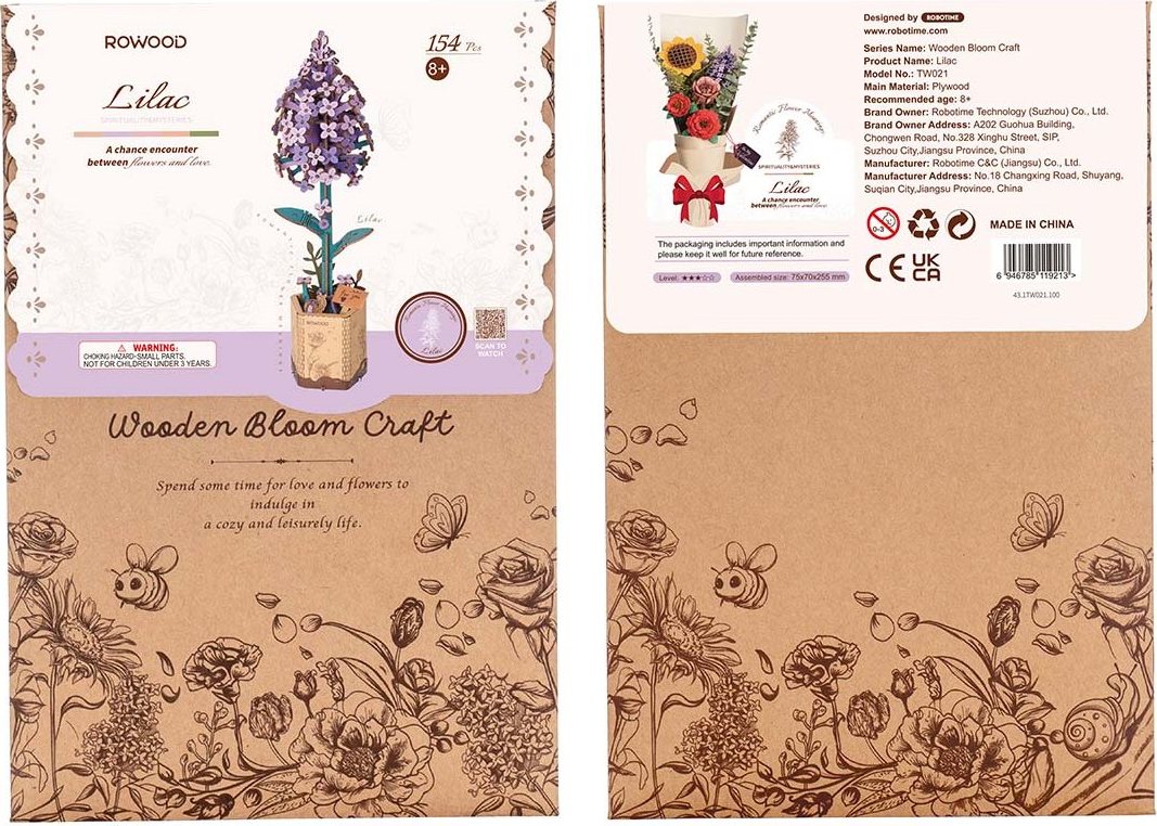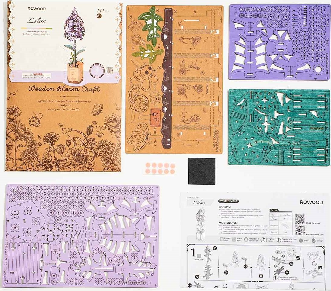 ROBOTIME Rowood 3D dřevěné puzzle Šeřík 154 dílků