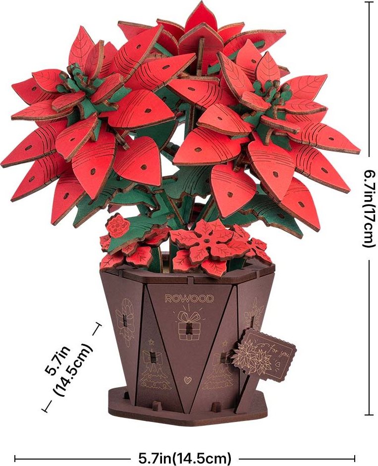 Poskládejte si vlastní 3D dřevěnou květinu. Skládání 3D modelů podporuje rozvoj jemné motoriky, prostorového myšlení a trpělivosti. Pozvěte svou rodinu nebo přátele a užijte si zábavné tvoření bez nutnosti použití lepidla nebo nástrojů. Všechny díly skládačky jsou přesně vyřezané a očíslované a lehce do sebe zapadnou, aby výsledek byl stabilní a odolný. Skládačka je dodávána v nesloženém stavu s obrázkovým návodem k sestavení.