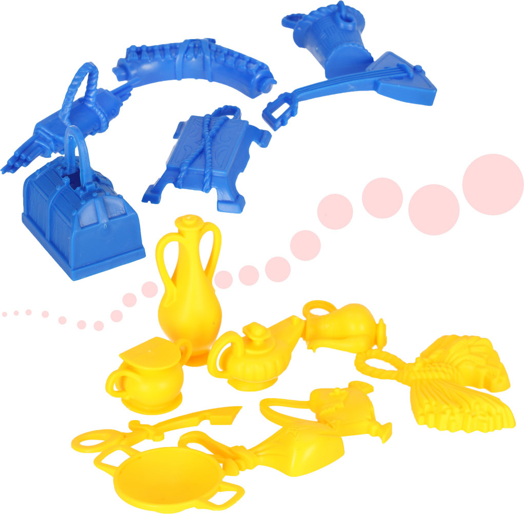 A o co přesně ve hře jde? V sadě najdete různé předměty a karty a také skládacího velblouda, kterého je třeba na začátku hry umístit do polohy vleže. Každý hráč si pak střídavě táhne jednu kartu, a pokud představuje nějaký předmět, umístí ji na sedlo! Na každé kartě je uveden počet bodů, které hráč získá za správné umístění nákladu na zvíře popsané v rohu. Kromě toho si hráč může vytáhnout bod zdarma nebo vynechat tah! Hra končí, když se během tahu kteréhokoli z hráčů velbloud postaví. Vyhrává ten, kdo získá nejvíce bodů!