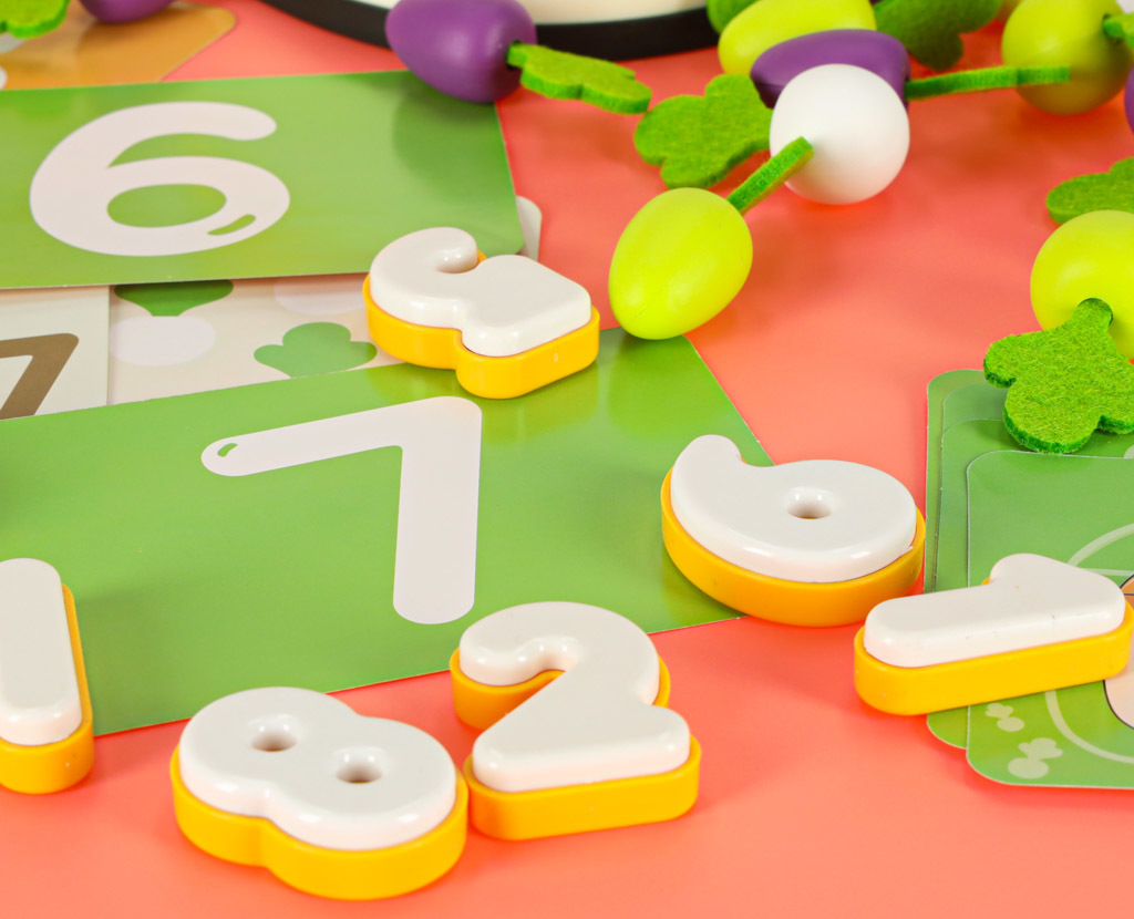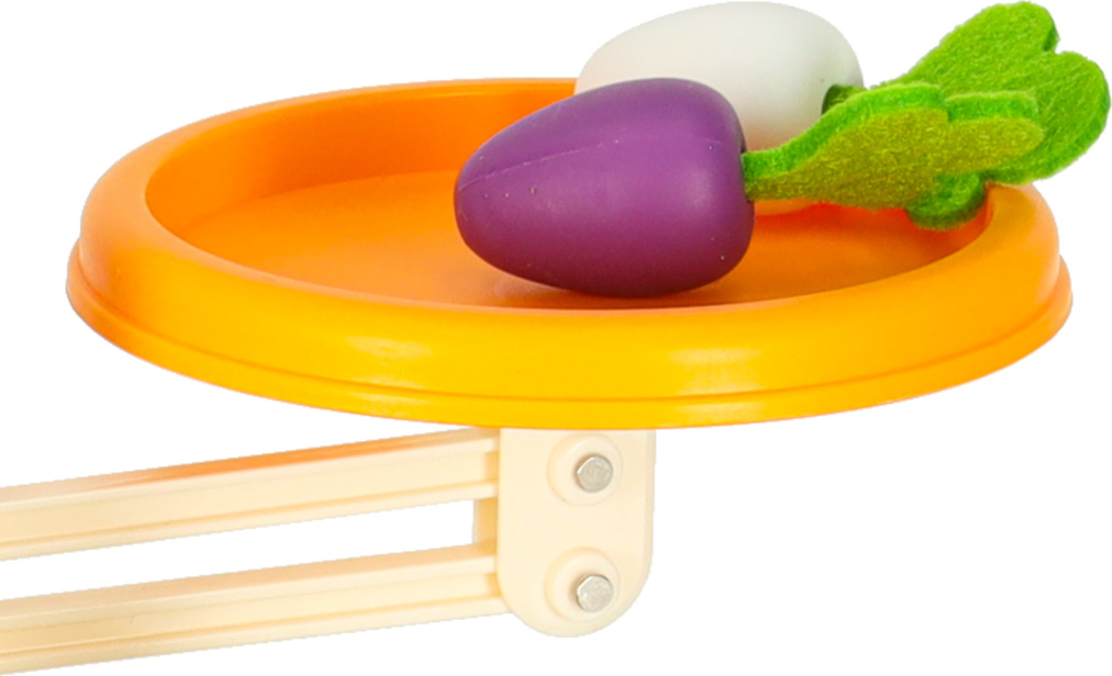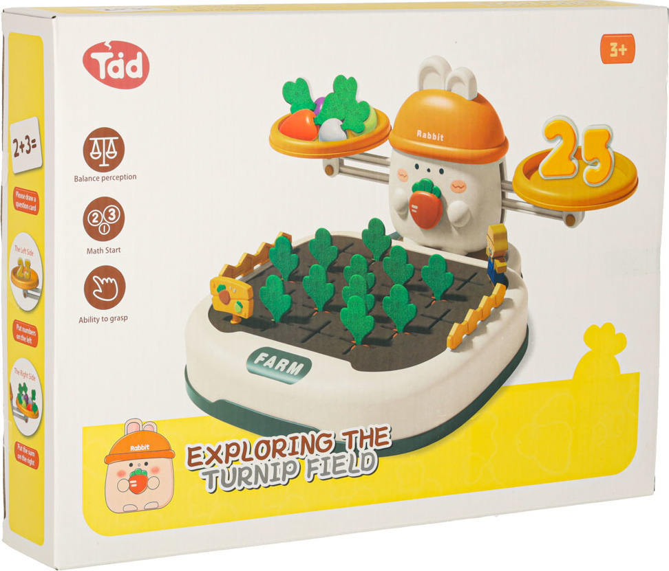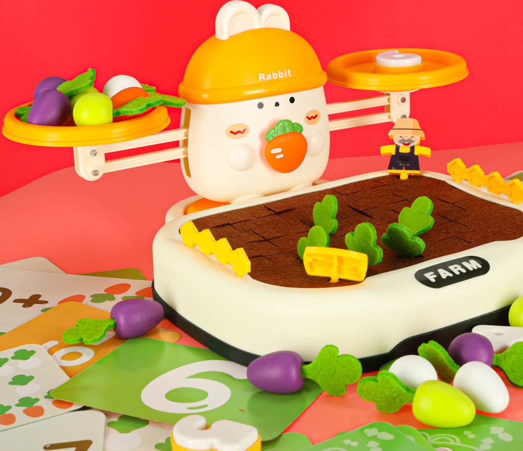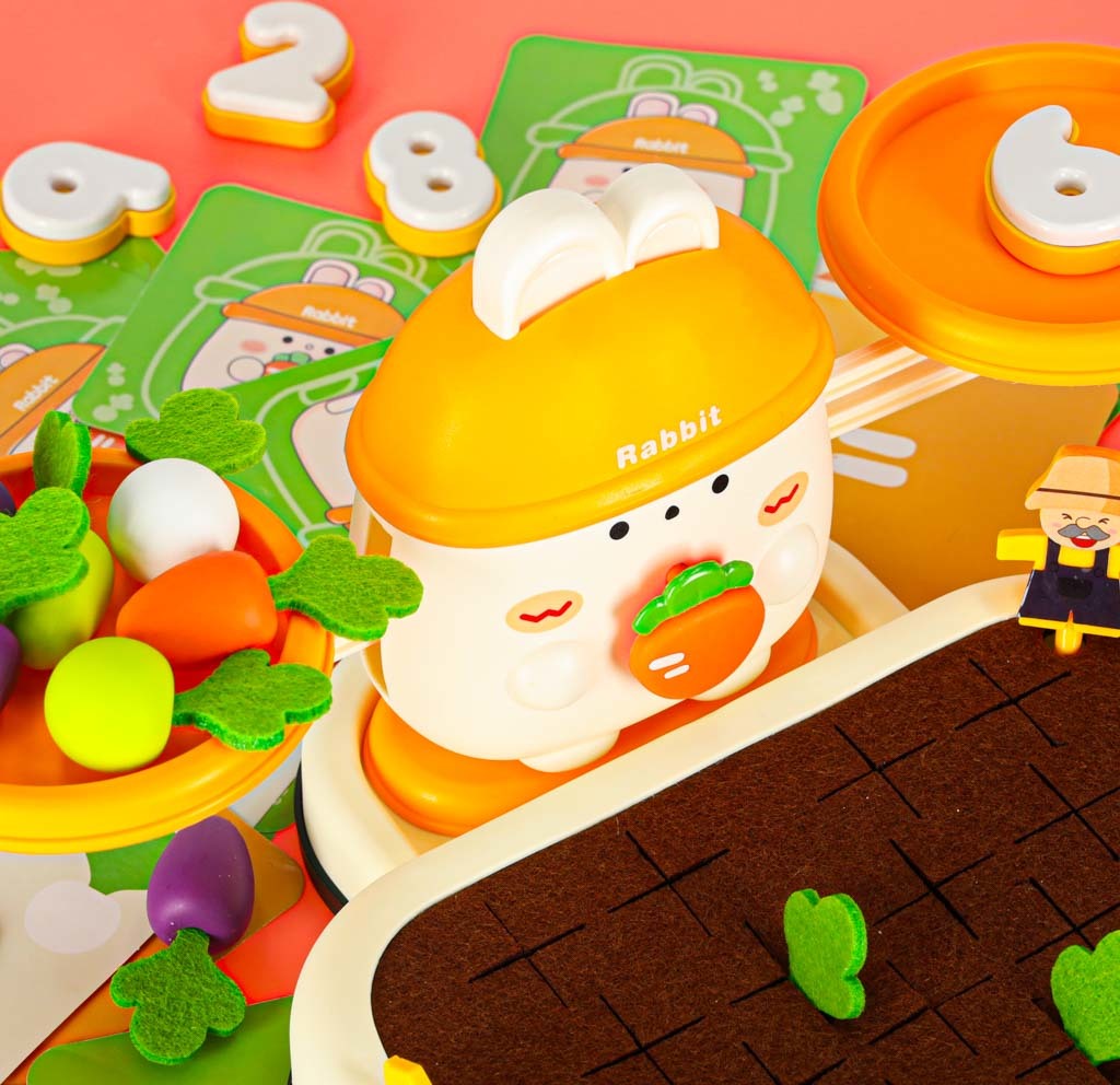 Rozkošný králíček kraluje v horní části sady a "hlídá" rovnováhu. Dítě může naskládat mrkev nebo jiné předměty ve snaze udržet rovnováhu nebo ji záměrně narušit, přičemž se učí základům fyziky a logického myšlení. Sada je také vybavena speciálními čísly - každé číslo má příslušnou váhu odpovídající číslu, které představuje. To umožňuje batoleti experimentovat, porovnávat váhy a učit se číselné hodnoty v praxi! Tato hra je skvělá pro podporu učení počítání a základních matematických pojmů.