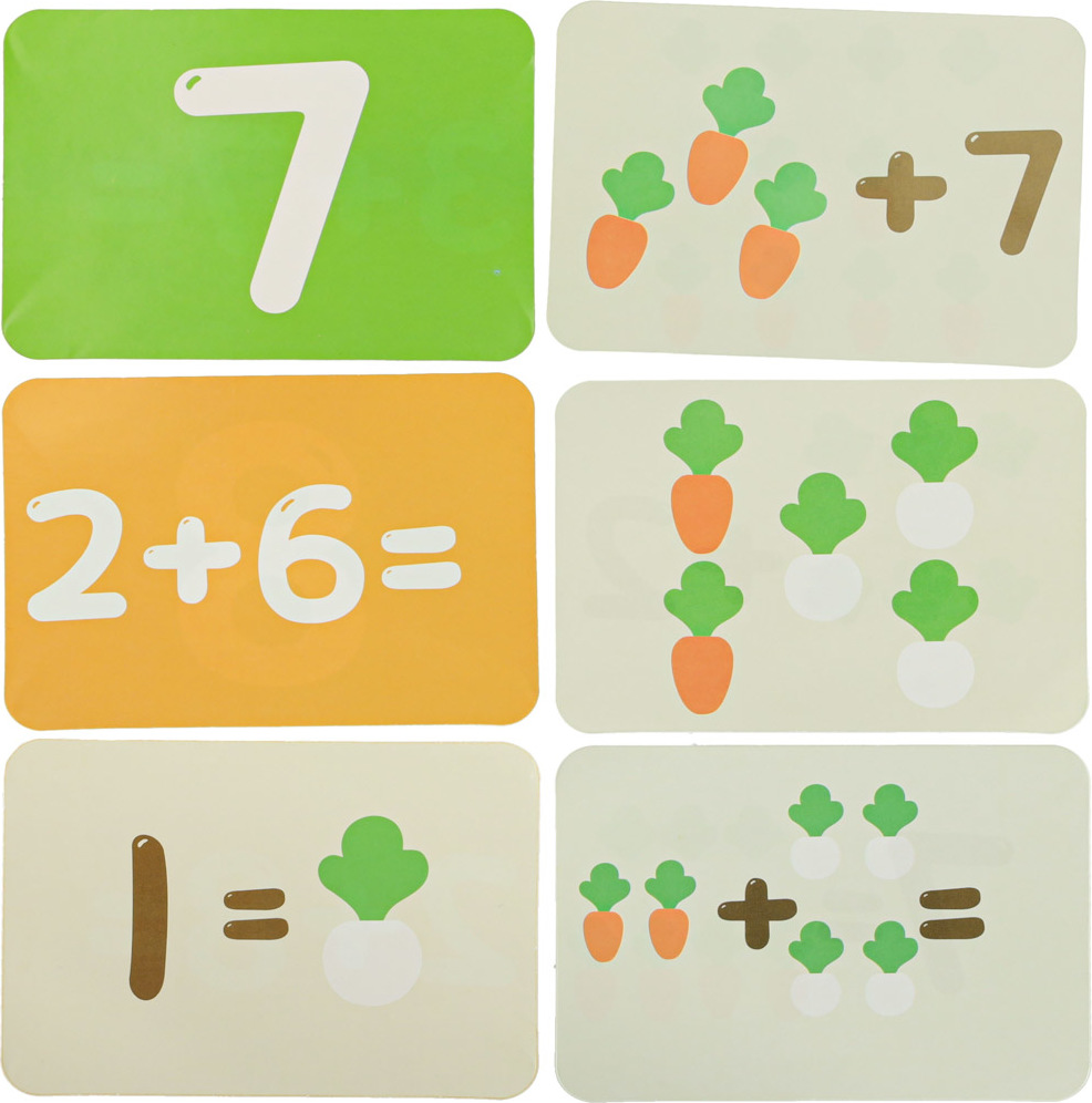 - 30 karet s čísly a mrkví (rozměry: 9×12,5 cm)