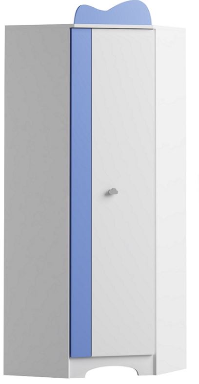 Rohová šatní skříň CLOUDS se vyznačuje vysokou kvalitou zpracování, kterou zajišťují kvalitní lamino desky o síle 18 mm. Hrany nábytku jsou opatřeny ABS/PVC materiálem, který jej chrání před mechanickým poškozením a vlhkostí. Barvu skříně můžete vybírat z naší bohaté nabídky dle vašich představ. Skříň je rozdělena do dvou policových částí. Levá část navíc obsahuje výsuvný držák pro zavěšení ramínek. Dvířka jsou osazená plastovým úchytem ve tvaru mráčku, charakteristickým pro celou kolekci. Úchyt dodává nábytku jedinečný charakter a styl. Šatní skříň CLOUDS skvěle doplní nábytek z této kolekce a vy tak můžete vytvořit kombinaci přesně podle potřeb vašeho dítěte nebo mladého studenta.