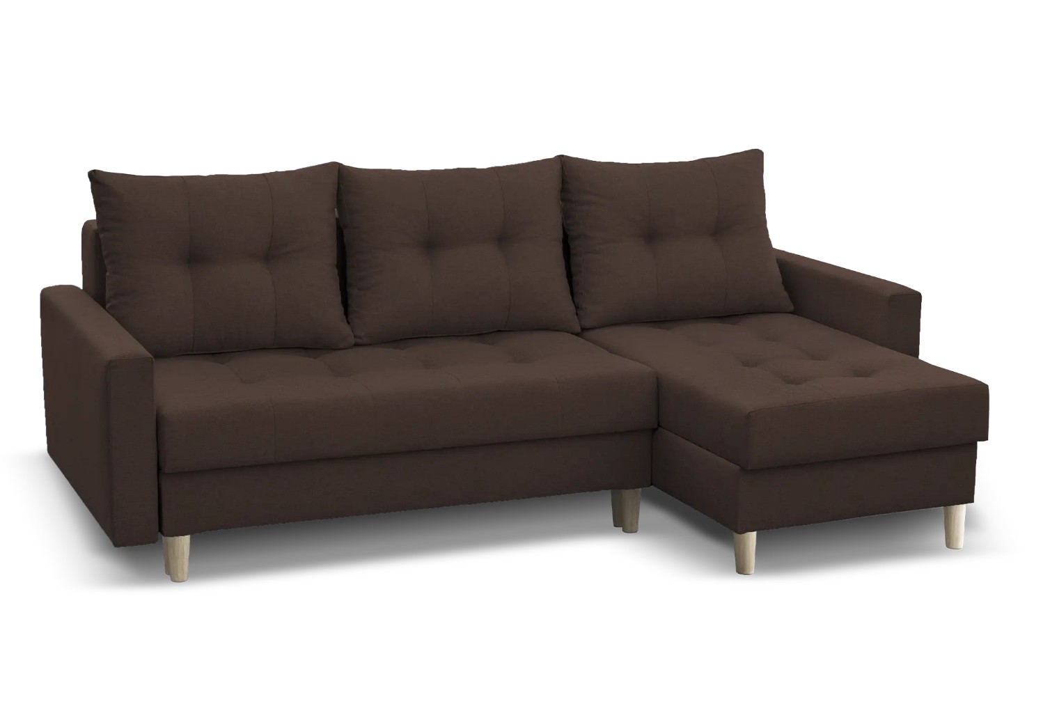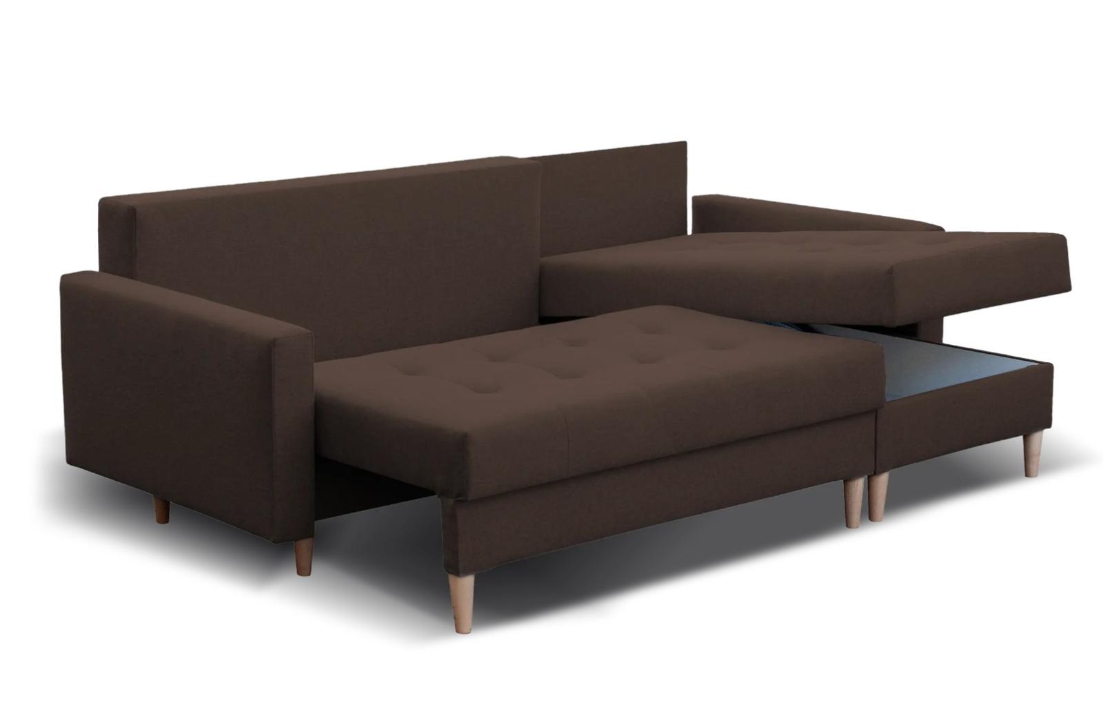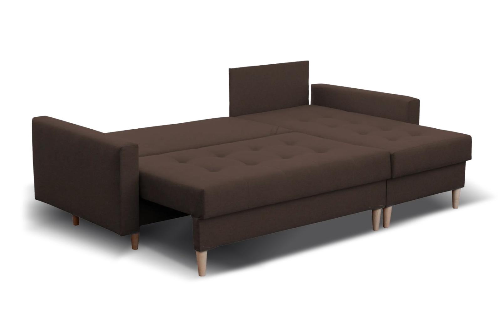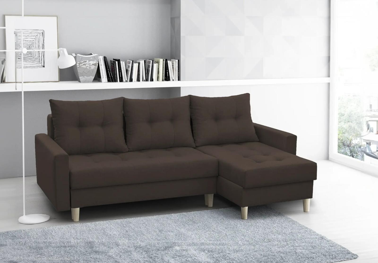 S rohovou sedací soupravou TRENTO získáte dokonalou kombinaci stylu a funkčnosti pro váš obývací pokoj. Dřevěné nohy dodávají soupravě elegantní a moderní vzhled, který se perfektně hodí k populárnímu skandinávskému stylu. Opěradlová část se skládá z polštářů, které jsou dvojitě prošívané. Sedací souprava se také může snadno přeměnit na pohodlné lůžko pro hosty nebo jako náhrada za klasickou postel v menším bytě. Díky úložnému prostoru pod sedákem, máte dostatek místa na uskladnění všech vašich věcí.