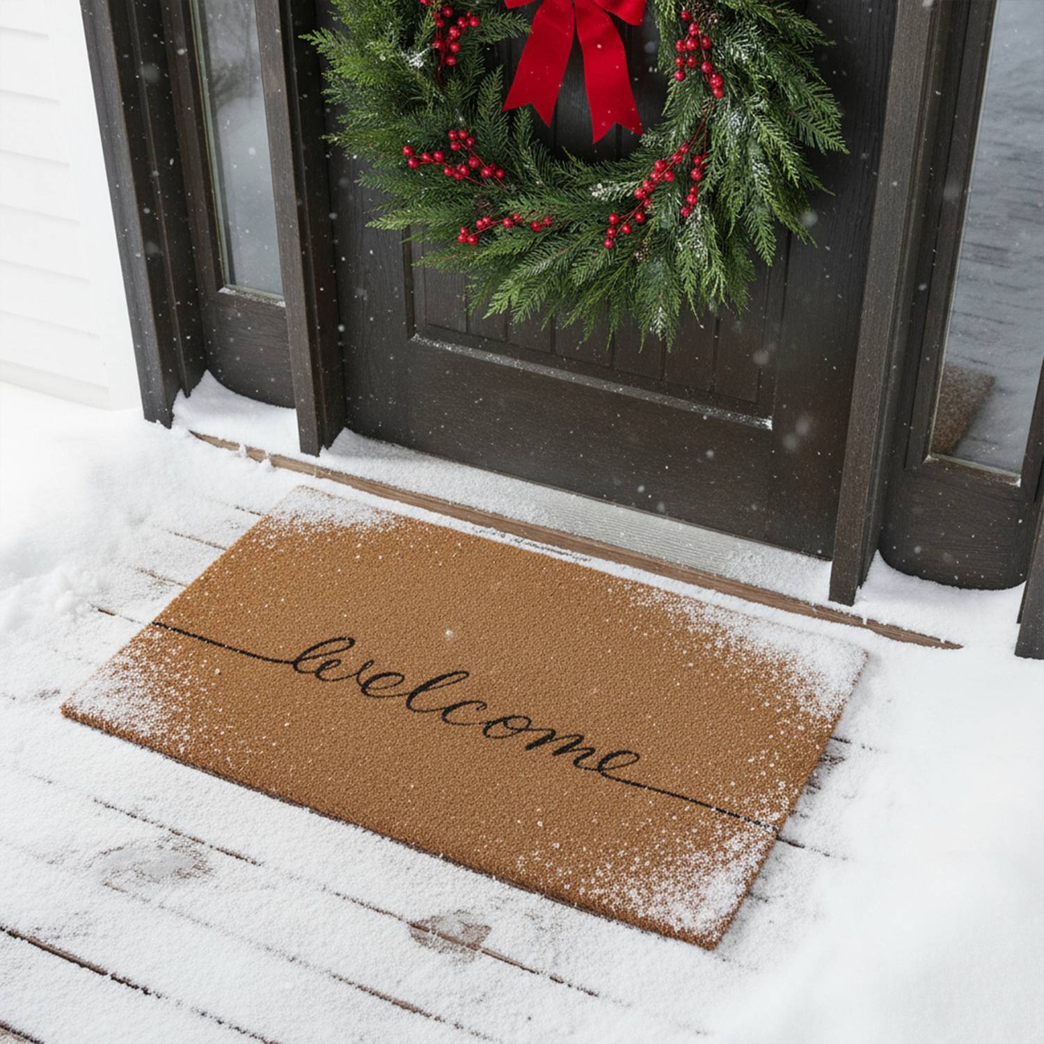 Rohožka WELCOME o rozměrech 50x80 cm vyrobená z přírodního kokosového vlákna je perfektním způsobem, jak si v tomto svátečním období vyzdobit vchod. Decentní nápis „WELCOME“ dodává hřejivý a příjemný nádech, zatímco přírodní kokosová barva krásně doplňuje sváteční dekorace. Vyrobena z přírodního kokosového vlákna (eko kokos), účinně zachycuje prach a vlhkost, čímž pomáhá udržovat váš vchod čistý. Díky pogumovanému protiskluzovému podkladu bezpečně přilne k podlaze a zabraňuje klouzání během používání.
