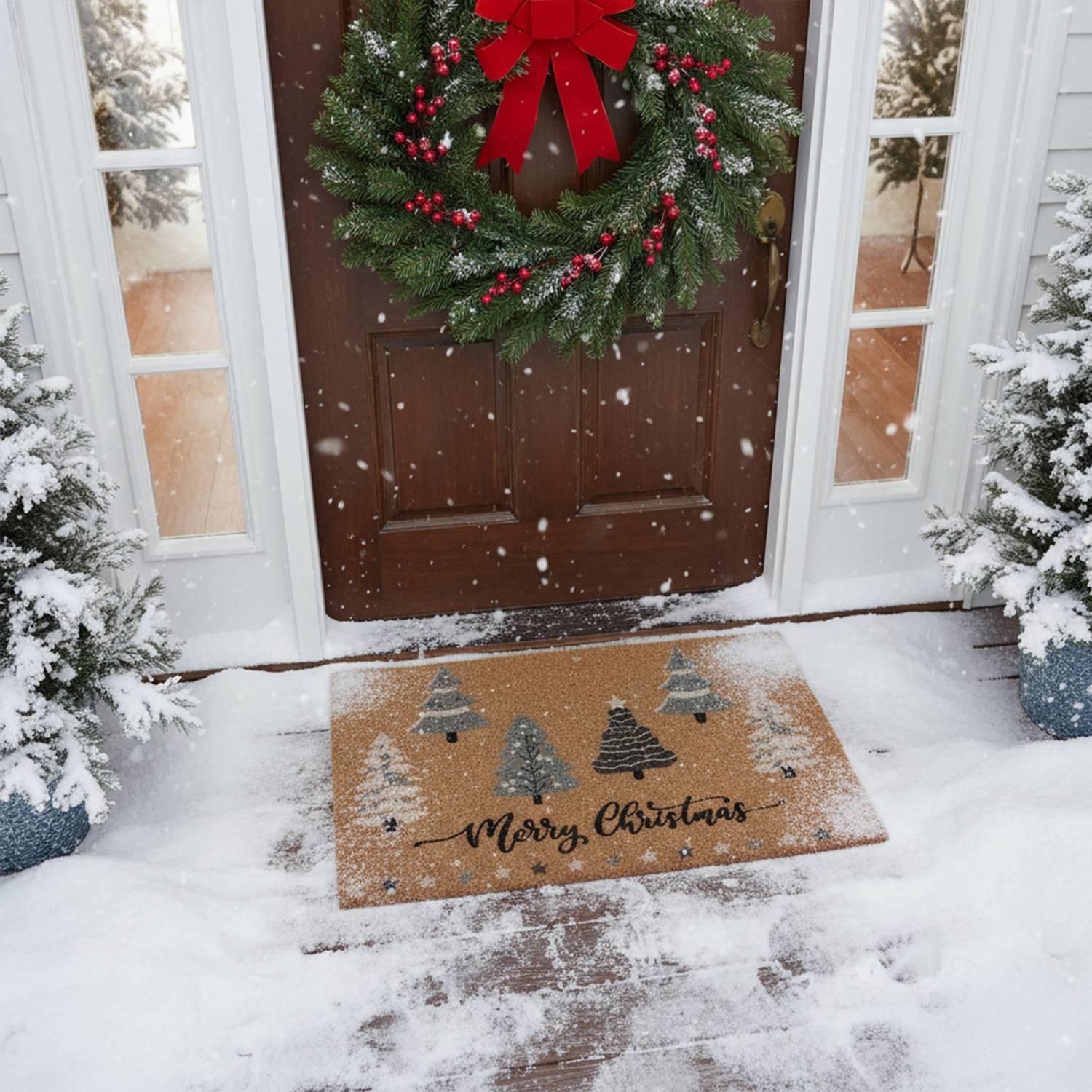 Rohožka WINTER TIME o rozměrech 40x60 cm vyrobená z přírodního kokosového vlákna je perfektním způsobem, jak si během svátků vyzdobit vchod. Decentní nápis „MERRY CHRISTMAS“ dodává hřejivý a příjemný nádech, zatímco přírodní kokosová barva krásně doplňuje sváteční dekorace. Vyrobena z přírodního kokosového vlákna (eko kokos), účinně zachycuje prach a vlhkost, čímž pomáhá udržovat váš vchod čistý. Díky pogumovanému protiskluzovému podkladu bezpečně přilne k podlaze a zabraňuje klouzání během používání.