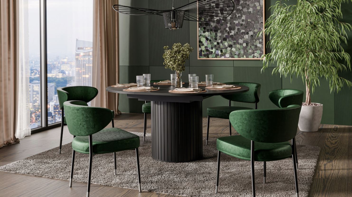 Rozkládací kulatý jídelní stůl z kolekce ZANTE se skvěle hodí do jídelen nebo obývacích pokojů zařízených v moderním, klasickém i glamour stylu. Produkty z kolekce ZANTE nabízíme ve dvou variantách barevného provedení, a to v klasické černé matné barvě nebo v módní kašmírové barvě. Kolekce ZANTE je velmi moderní, kombinuje funkčnost a styl. Kombinace zaoblených tvarů se stylovými kovovými nožkami dodává celé kolekci eleganci a jedinečnost.