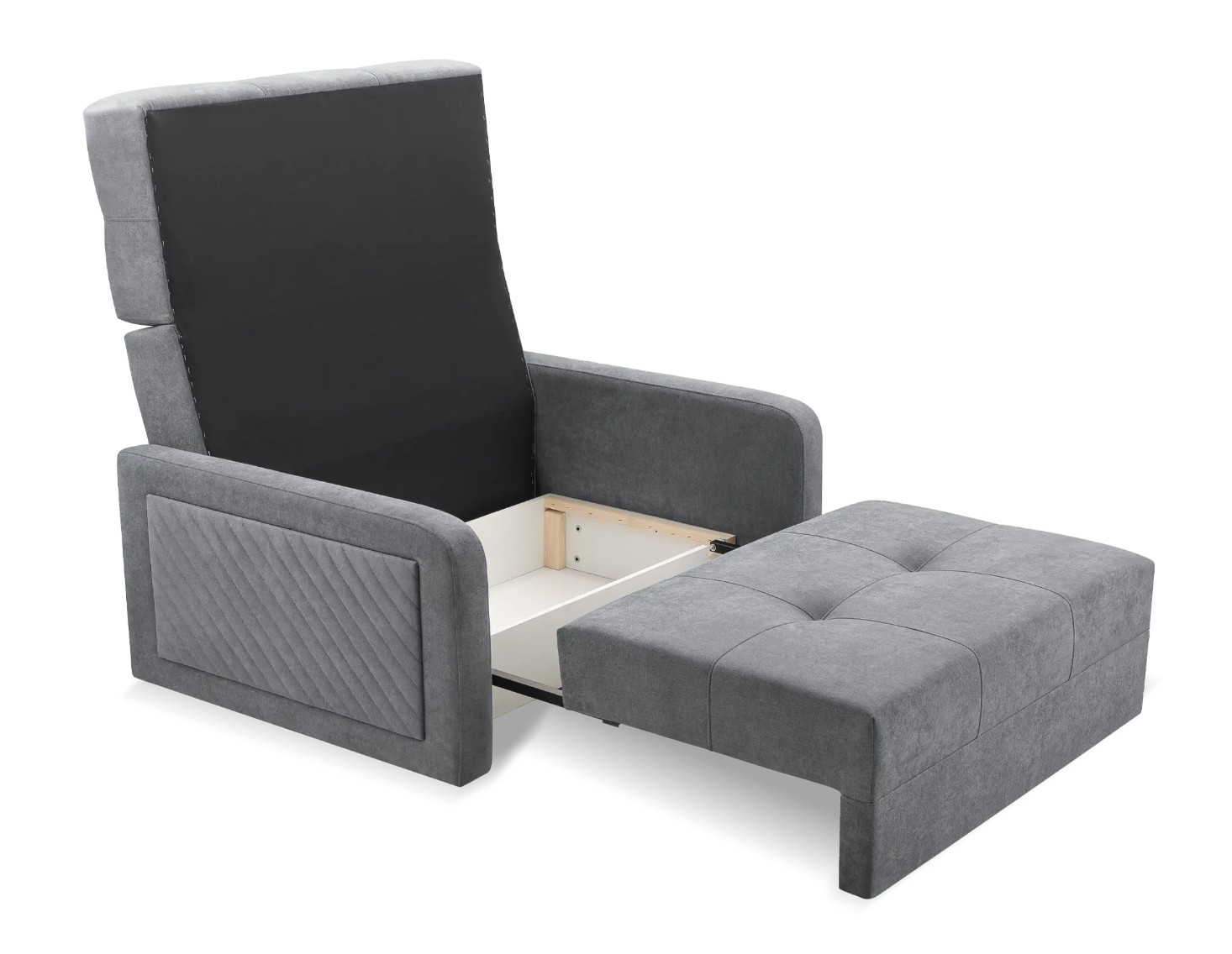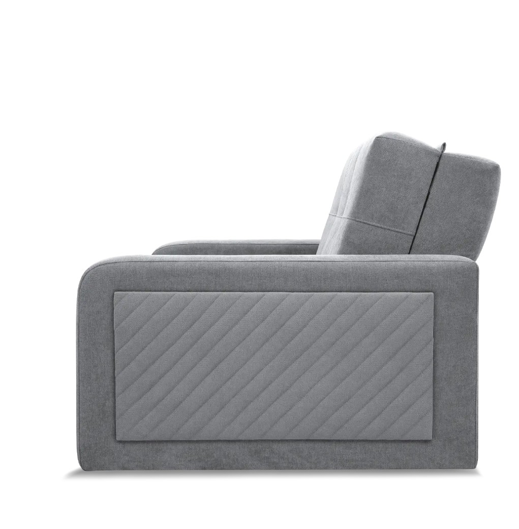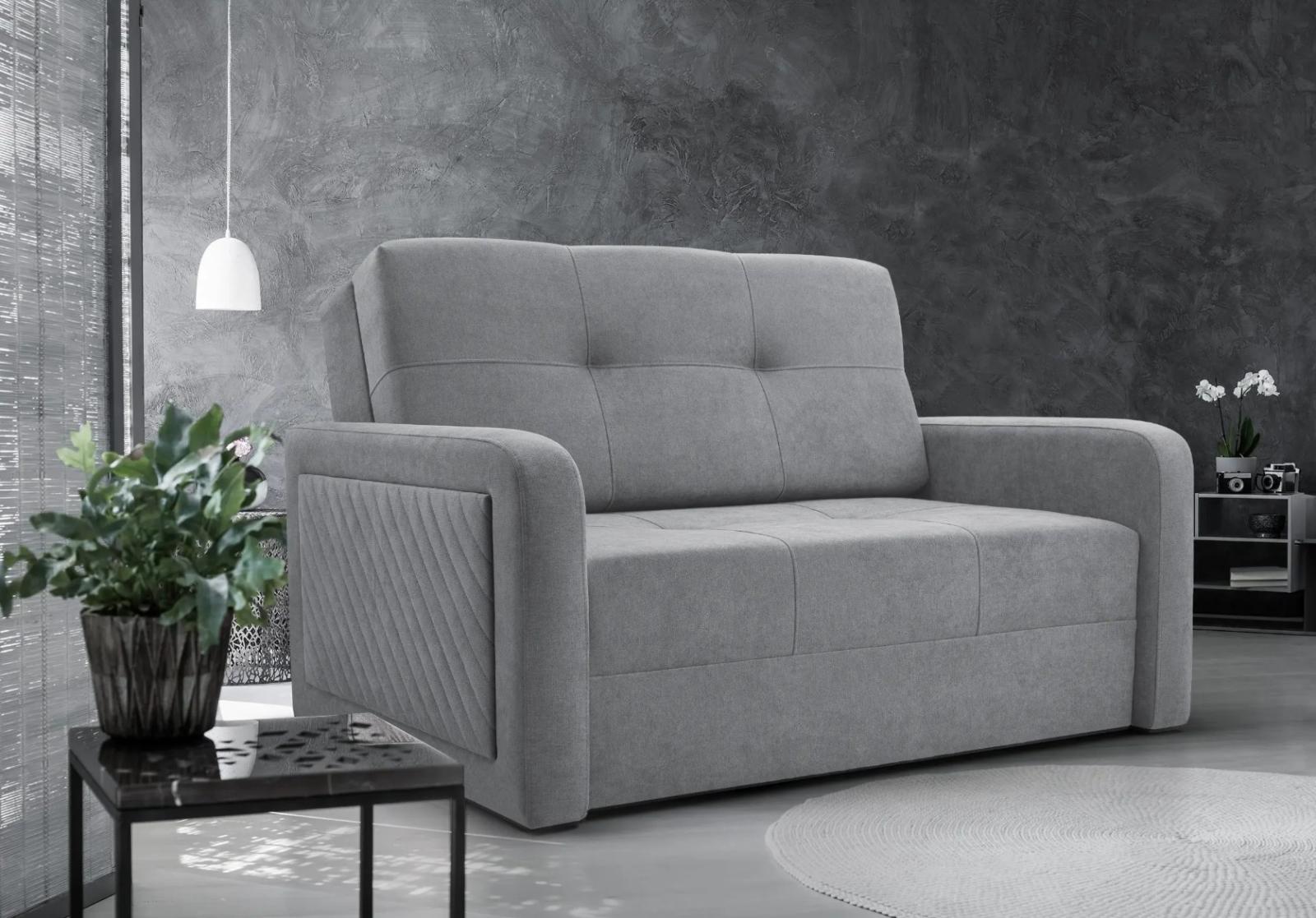 Pohodlná pohovka je dokonalým doplňkem pro obývací pokoj nebo dětský pokoj. Je rozkládací a nabízí velký úložný prostor na lůžkoviny. Konstrukce je vyrobena z masivu a kvalitní laminované desky, která je odolná proti poškrábání, vysoké teplotě a vlhkosti. Pružinová tlumící konstrukce s kvalitní T30 PUR pěnou se zajistí o ideální komfort pro sezení i spaní.