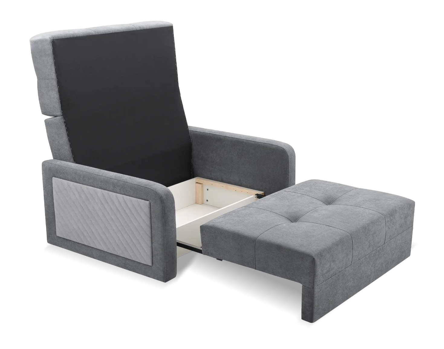 Pohodlná pohovka je dokonalým doplňkem pro obývací pokoj nebo dětský pokoj. Je rozkládací a nabízí velký úložný prostor na lůžkoviny. Konstrukce je vyrobena z masivu a kvalitní laminované desky, která je odolná proti poškrábání, vysoké teplotě a vlhkosti. Pružinová tlumící konstrukce s kvalitní T30 PUR pěnou se zajistí o ideální komfort pro sezení i spaní.