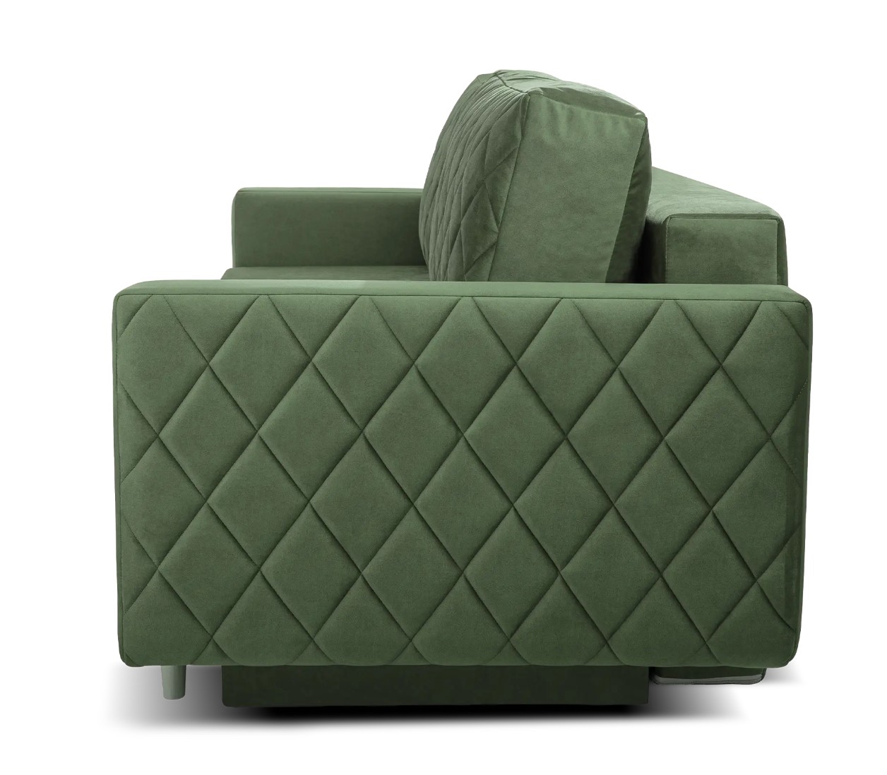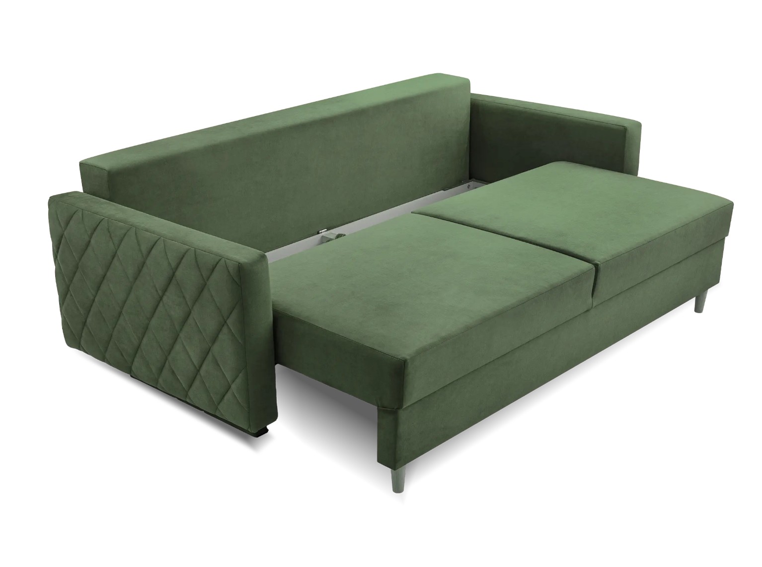 Pohovka kolekce Leonardo není pohodlná, ale díky svému designu i skvělým estetickým doplňkem pro obývací pokoj. Je snadno rozkládací a nabízí velký úložný prostor na lůžkoviny. Konstrukce je vyrobena z masivu a kvalitní laminované desky, která je odolná proti poškrábání, vysoké teplotě a vlhkosti. Pružinová tlumící konstrukce s kvalitní T30 PUR pěnou se zajistí o ideální komfort pro sezení i spaní.