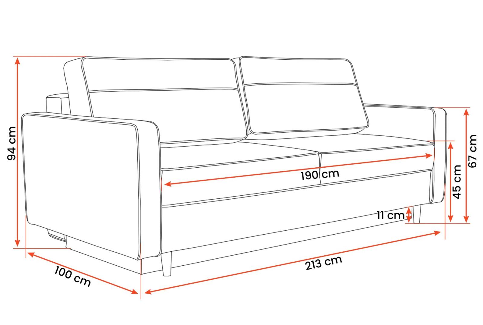 - šířka: 213 cm, výška: 94 cm, hloubka: 100 cm