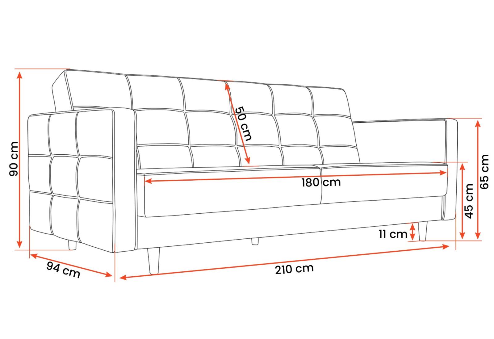 - rozměry: šířka: 210 cm, výška: 90 cm, hloubka: 94 cm