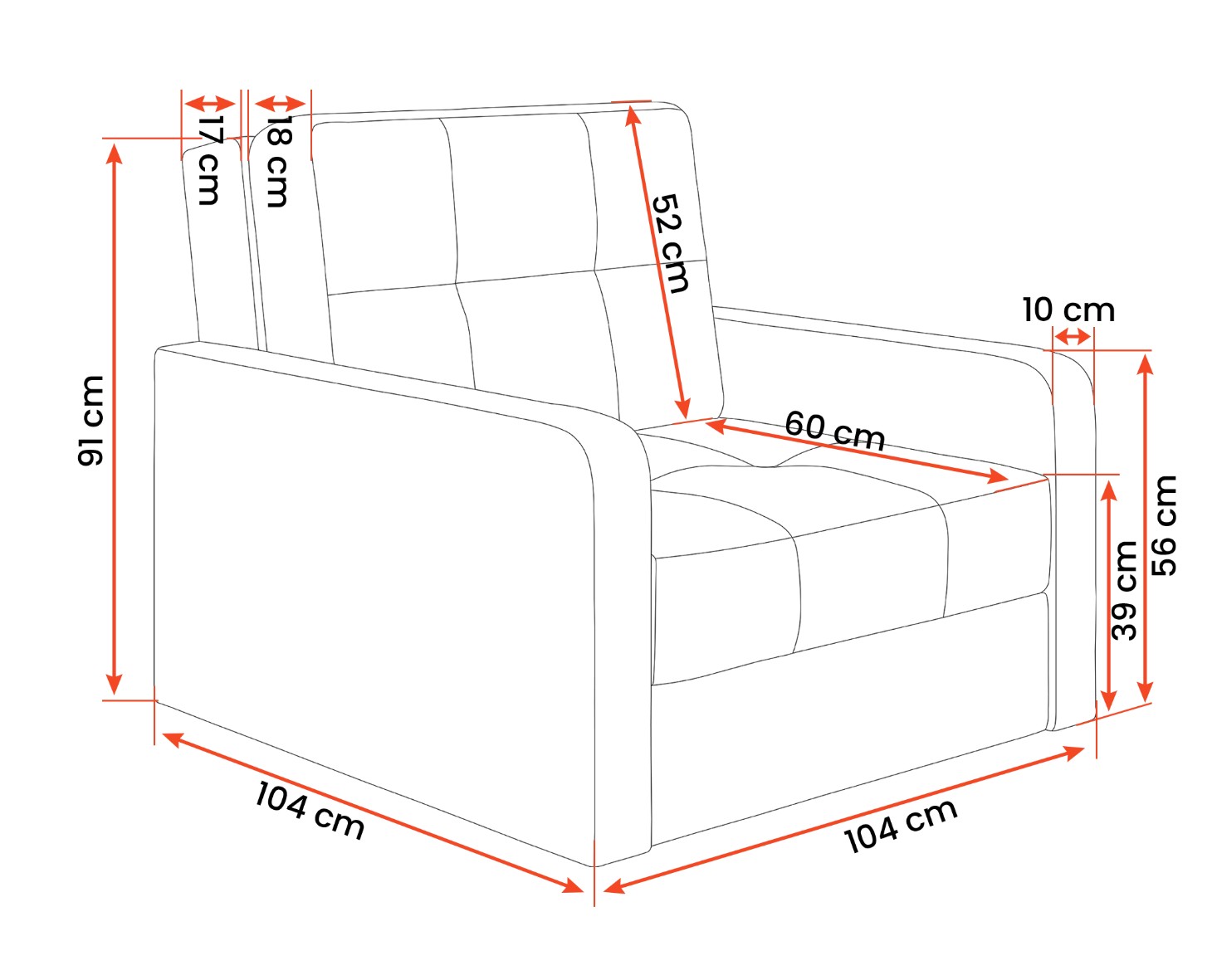 - šířka: 104 cm, výška: 92 cm, hloubka: 104 cm
