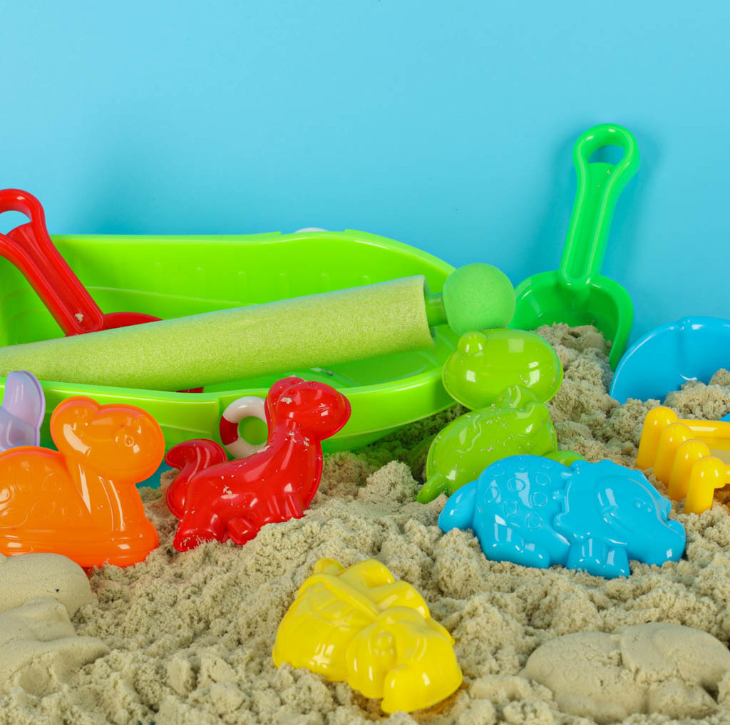 Sada hraček, která zaručí kreativní a aktivní hraní! Hračky do písku pro děti jsou ideální pro domácí pískoviště, na zahradu i na pláž a poskytnou dětem spoustu zábavy a pohybu. Sada hraček do písku promění každý den strávený venku v plný smíchu a učení hrou. Formičky a loďka, které jsou součástí sady, umožní vašemu dítěti vytvářet přístavy, vodní cesty a písečná města, zatímco hrábě, lopatky, sítko a stříkací pistole učiní letní dny ještě zajímavějšími a radostnějšími.