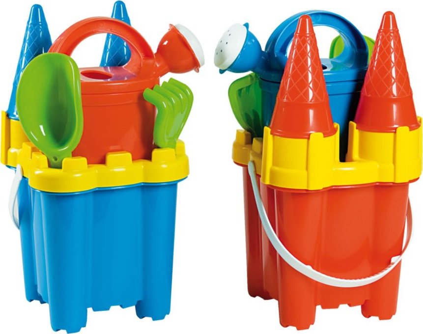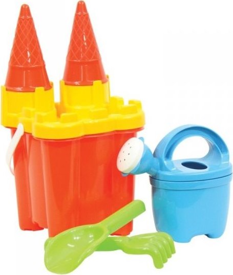 Sada na písek s konvičkou zabaví na pískovišti nebo na pláži u moře každé dítko. Souprava obsahuje: 1 kyblík (výška 16 cm) 1 lopatka 1 hrábě 1 sítko 1 konvička 2 formičky ve tvaru kornoutků Vyrobeno z plastu. Baleno v síťce. Hračka vhodná pro děti od 3 let. POZNÁMKA: Obrázek je ilustrativní! Barva sady je různa a může se lišit v závislosti na aktuální skladové zásobě.Vlastnosti