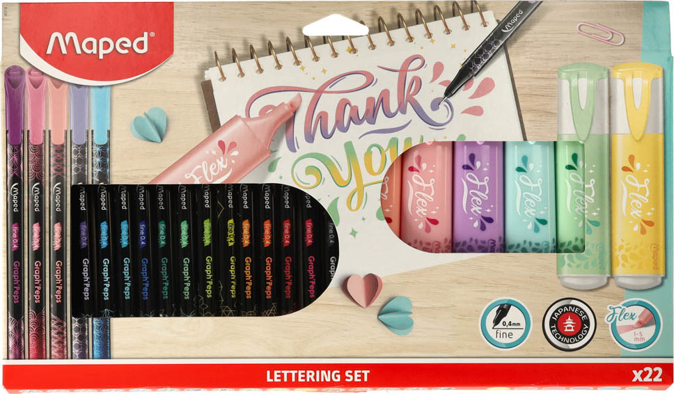 - 6 zvýrazňovačů Flex a 16 tenkých per Graph'Peps Deco.