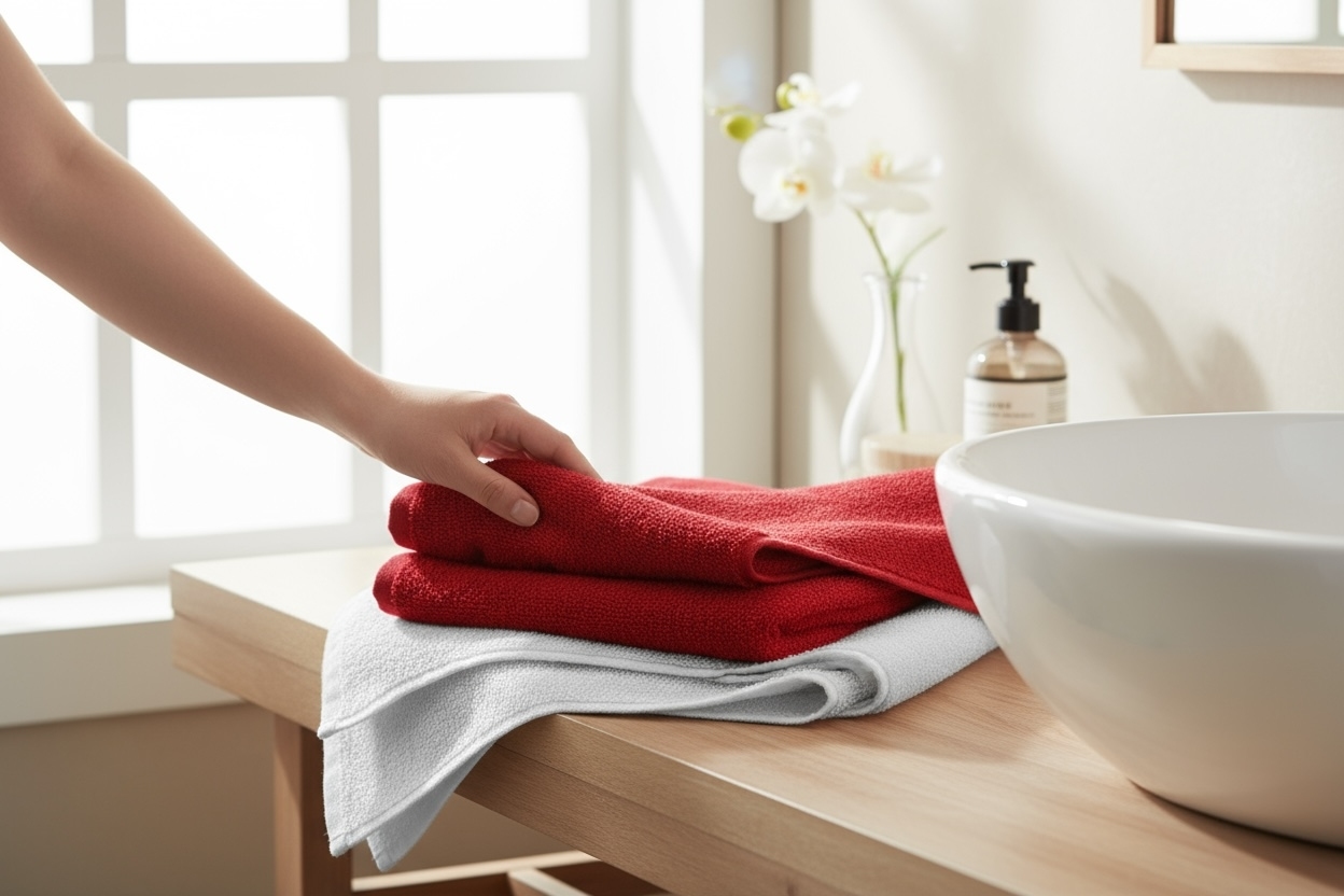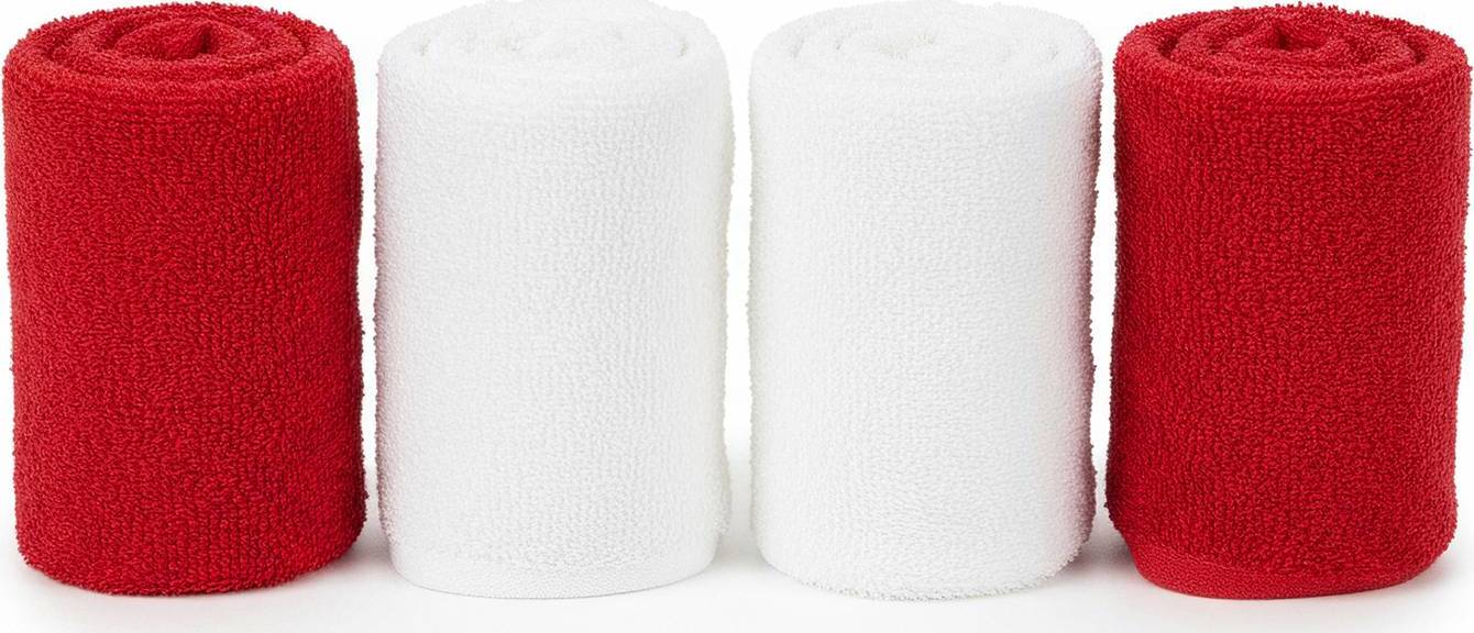- sada obsahuje 4 ručníky (2 červené + 2 bílé)