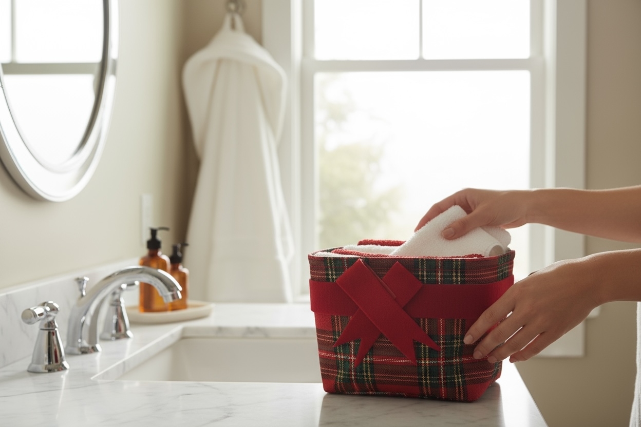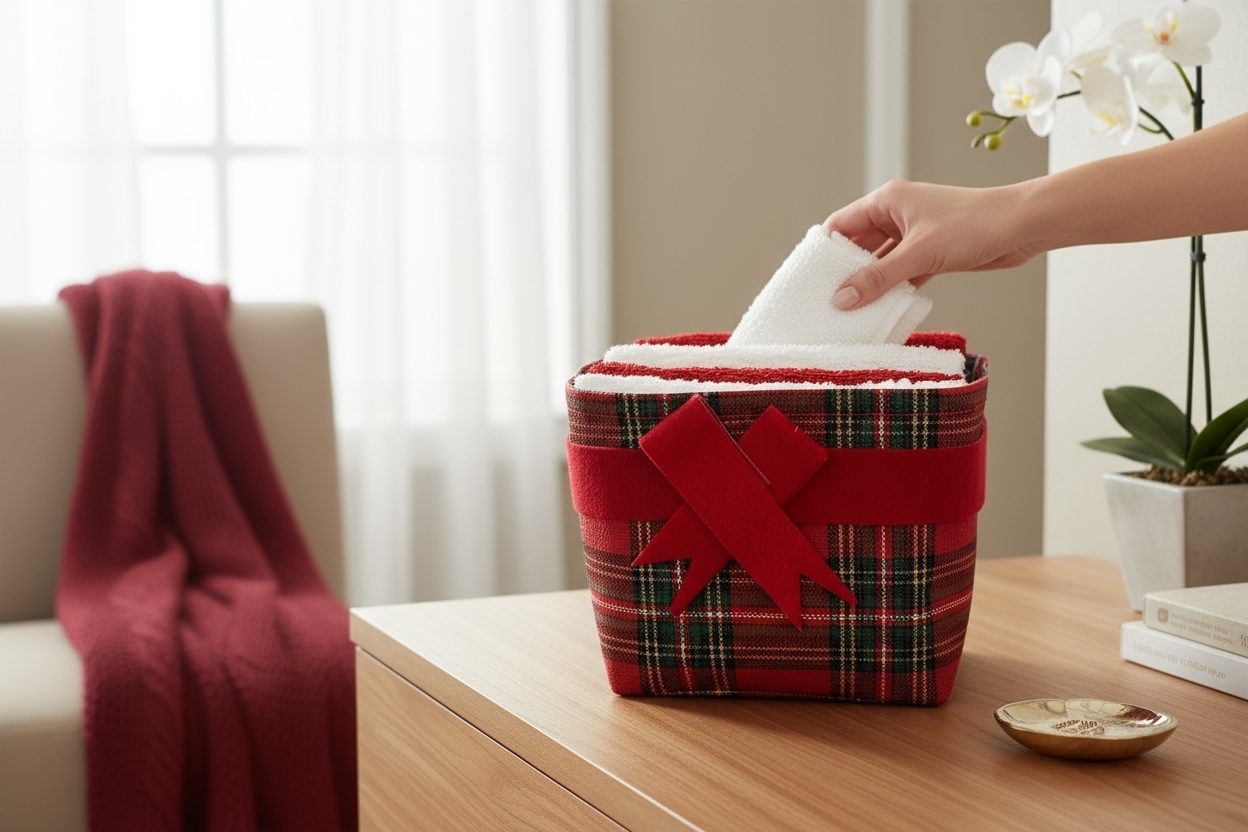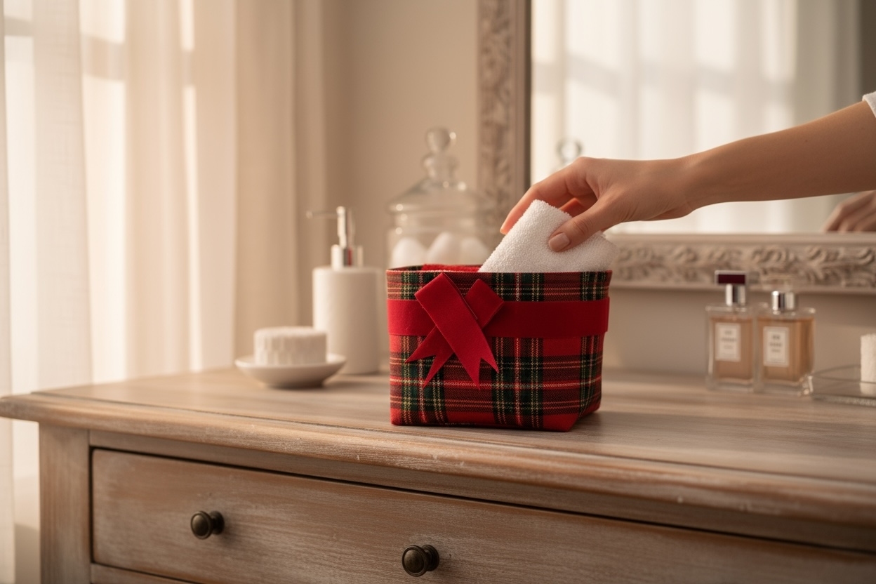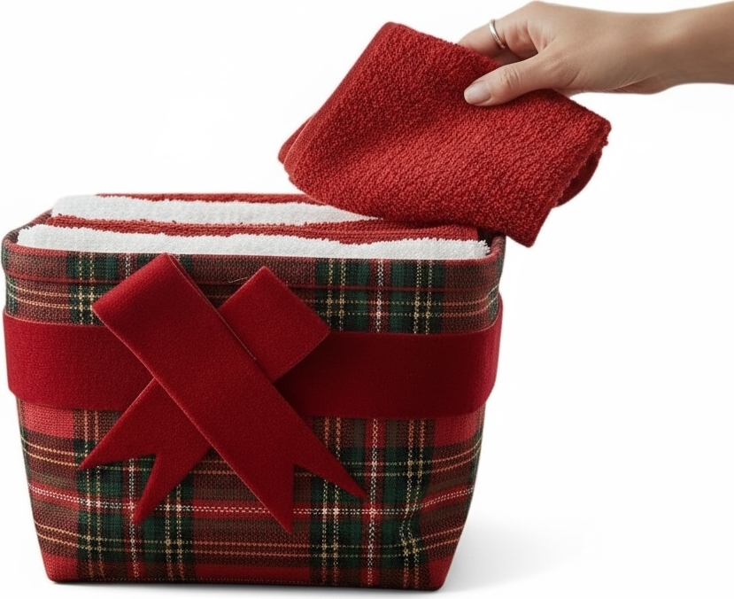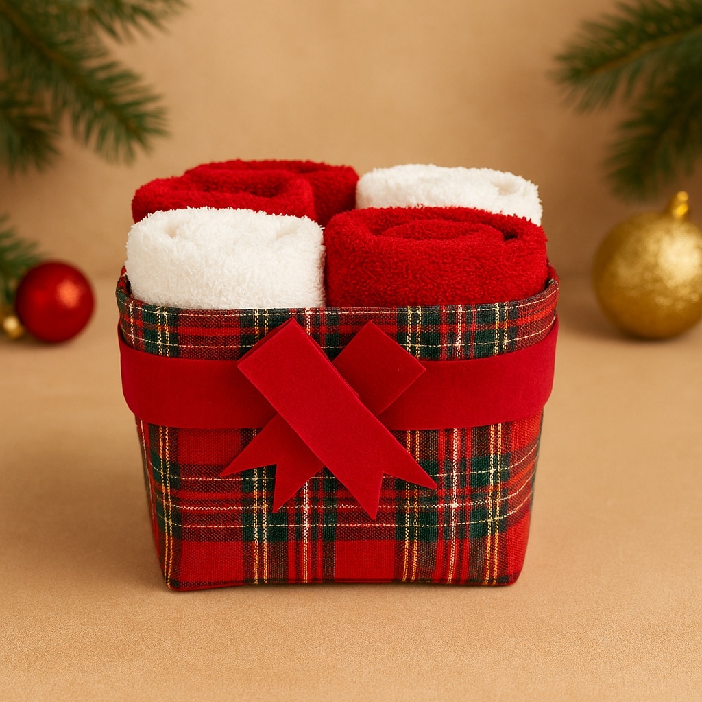 Elegantní a praktická sada Magic Holiday je perfektním dárkem, který kombinuje funkčnost s jedinečným stylem. Sada obsahuje čtyři měkké ručníky v klasických vánočních barvách – dva červené a dva bílé. Celá sada je zabalena v nápadné vánoční krabičce, zdobené tartanovou látkou a ozdobnou mašlí. Stylové balení znamená, že sada nevyžaduje žádné další dárkové balení – je připravena k darování blízkým. Po použití ručníků lze krabičku použít jako košík na drobnosti, dekorace nebo jako organizér do koupelny. Ručníky jsou vyrobeny z vysoce kvalitní bavlny, díky čemuž jsou měkké, savé a příjemné na dotek – ideální pro každodenní použití v koupelně nebo kuchyni.
