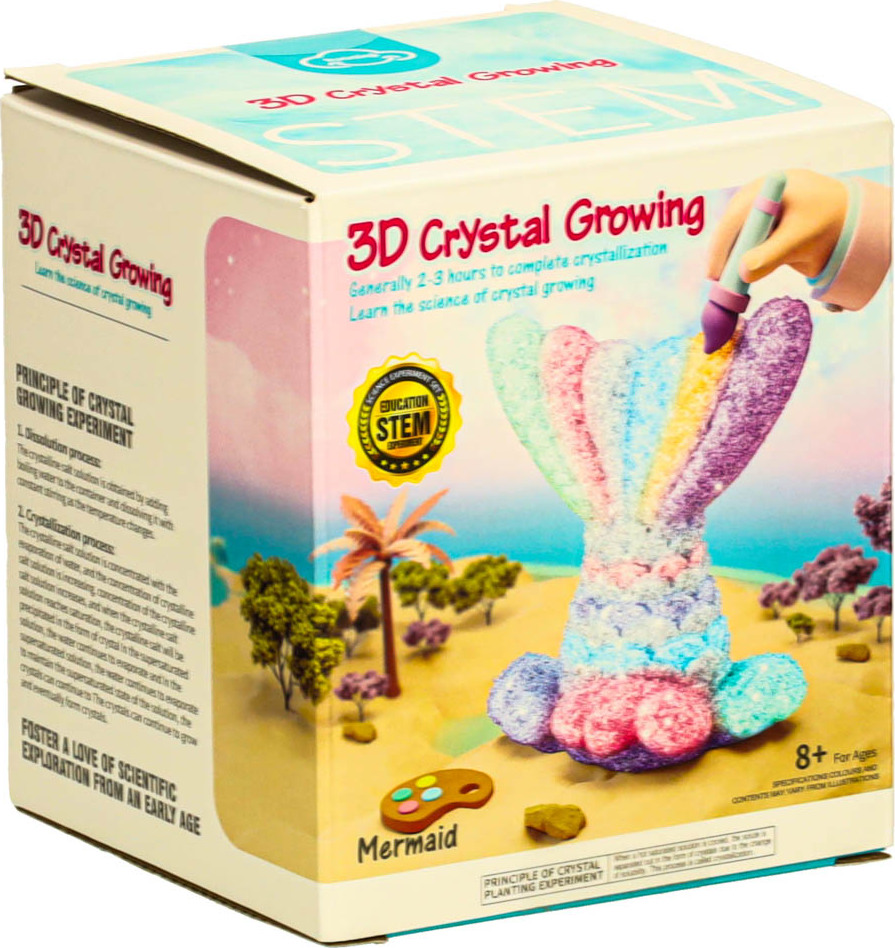 Sada na pěstování krystalů je hračka pro mladé nadšence do chemie. Umožňuje pěstovat krystaly na ocasu mořské panny vyrobeném ze sádry. Sada obsahuje potřebné pěstební příslušenství a tři barvy na malování vypěstovaných krystalů. Tato hračka podporuje rozvoj kreativity a stimuluje dětskou zvědavost.