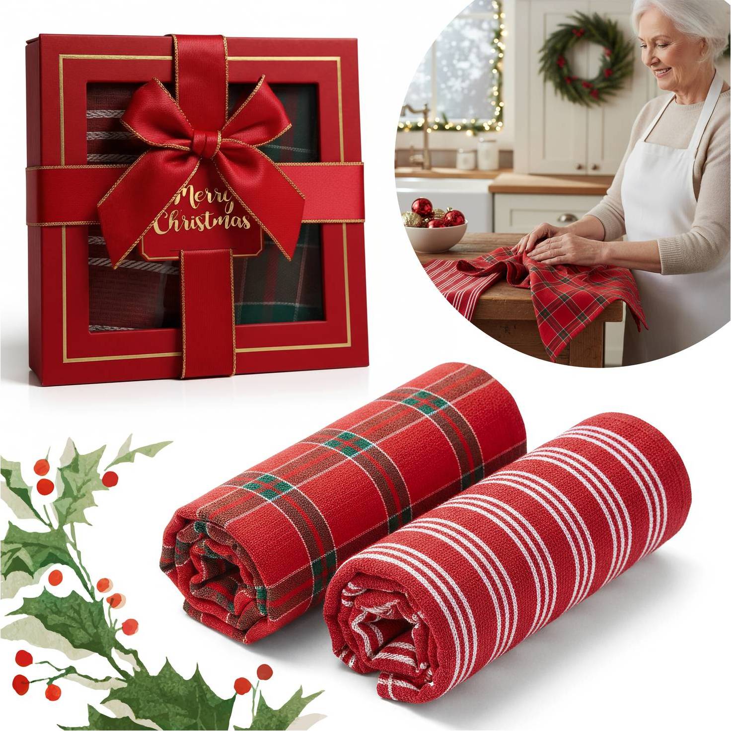 Sada KOUZLO VÁNOC je elegantní kombinací funkčnosti a svátečního stylu, která zaujme na první pohled. Dvě vysoce kvalitní kuchyňské utěrky vyrobené ze 100% přírodní bavlny jsou baleny v výrazné červené krabičce zdobené mašlí a zlatým lemováním. Není to jen praktická textilní sada, ale také hotový elegantní vánoční dárek.
