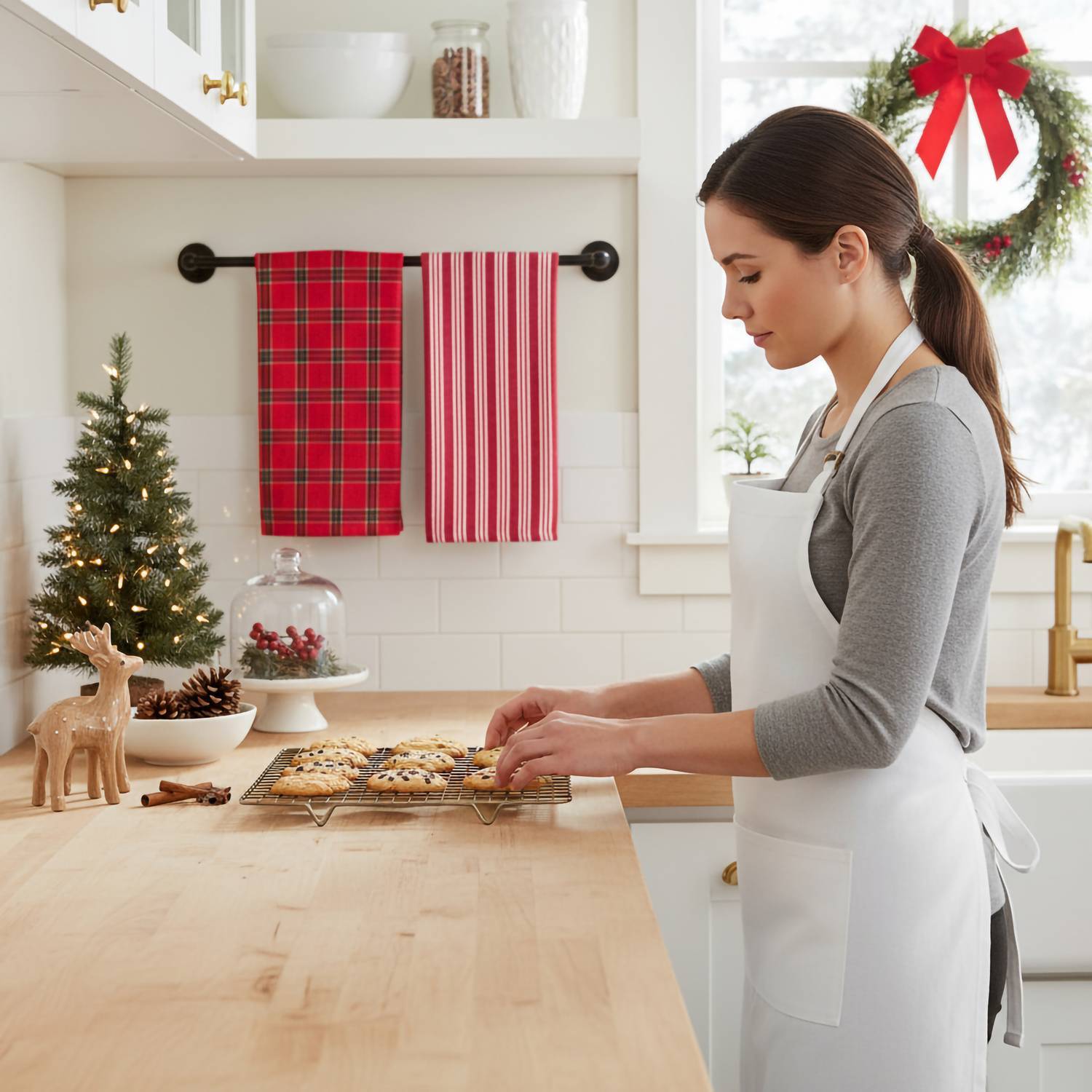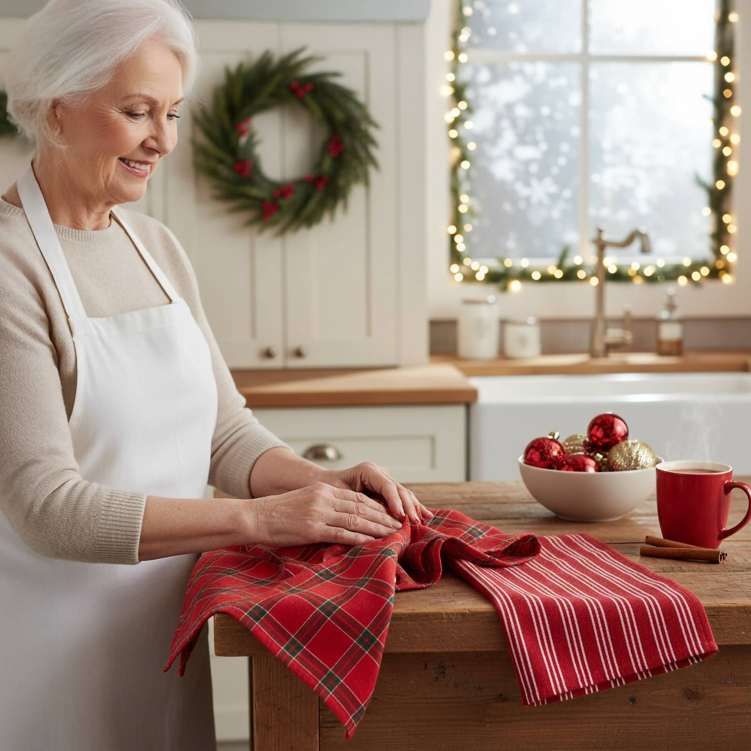 Každá utěrka má celoplošně vyšívaný vzor inspirovaný klasickými vánočními motivy. Látka je savá, měkká a odolná, díky čemuž jsou utěrky ideální pro každodenní použití. Pevný kartonový obal lze znovu použít – ideální pro uložení drobností nebo jako dekorativní dárková krabička.