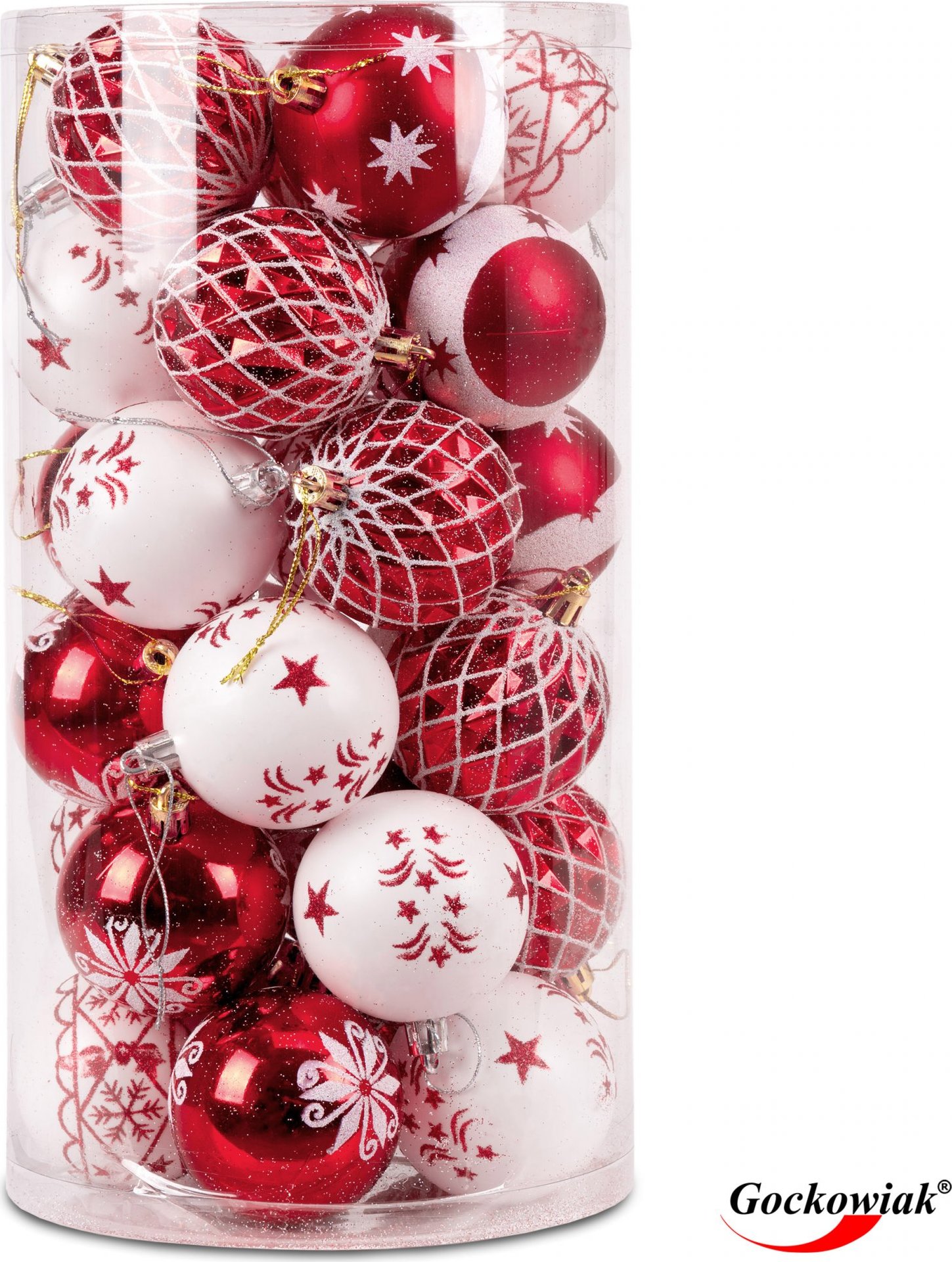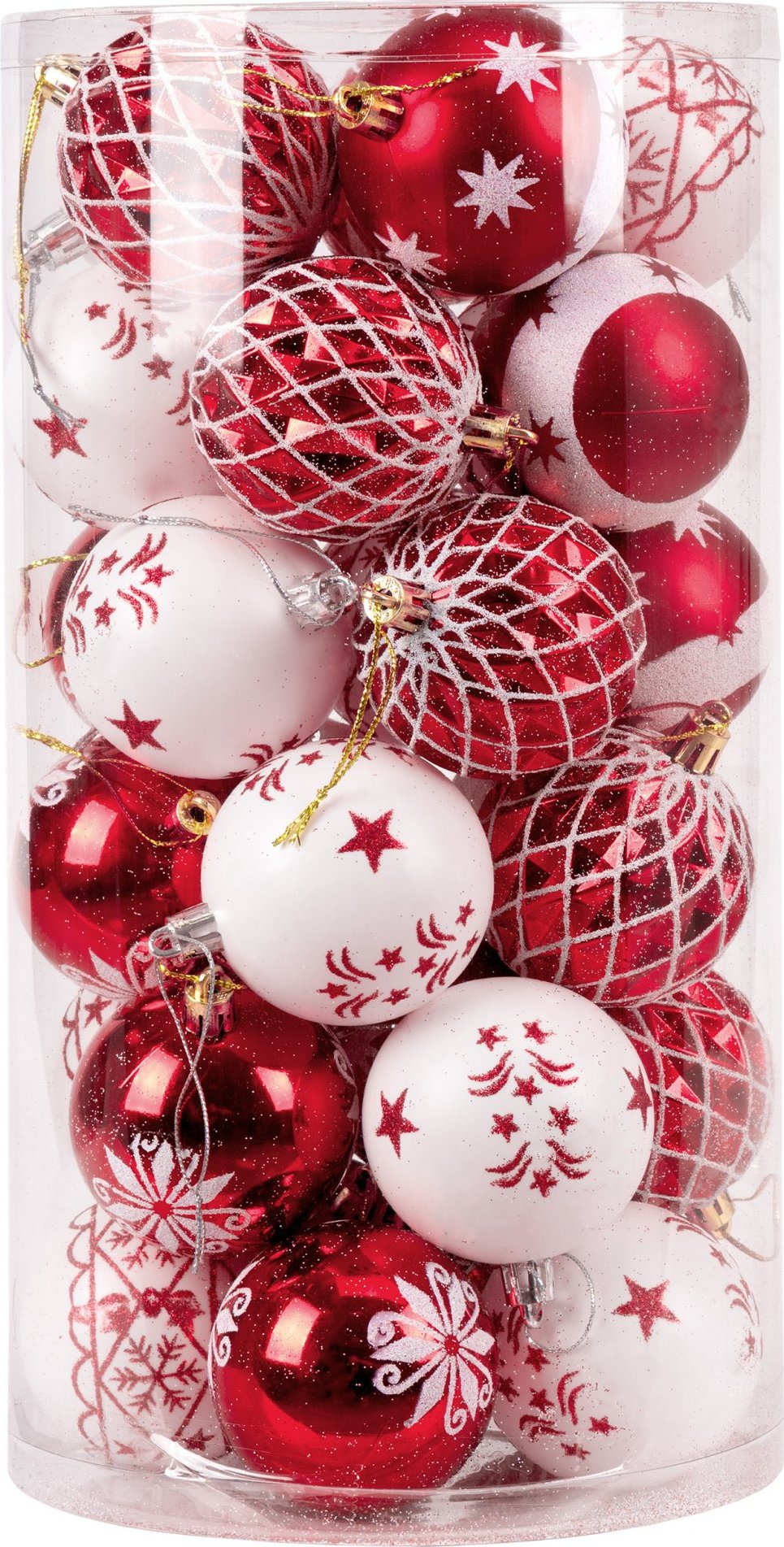 Sada vánočních baněk na stromeček SAPIN - 30 kusů - červené/bílé